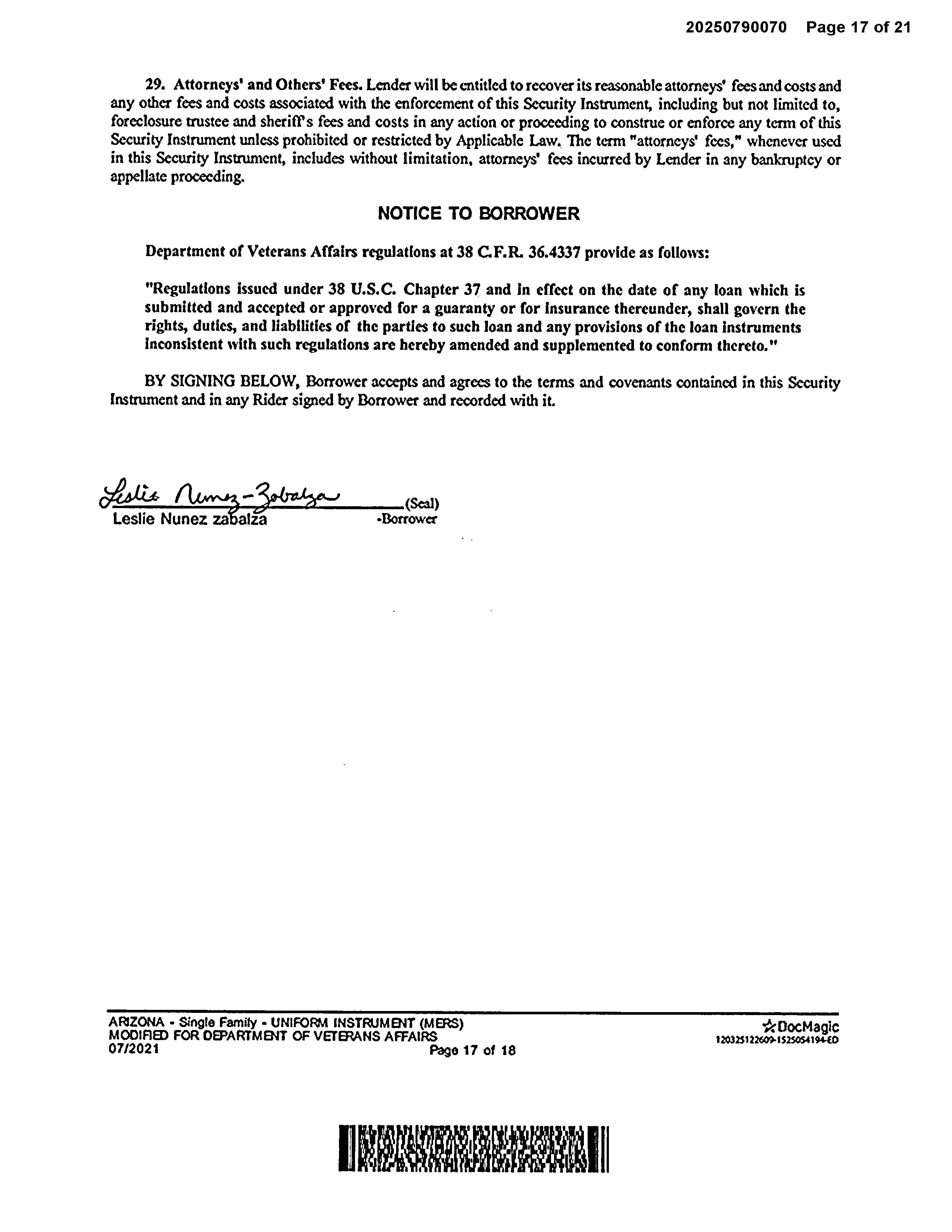 OWNER: NUNEZ ZABALZA LESLIE AFFIDAVIT 2021 3050920 11/01/2021