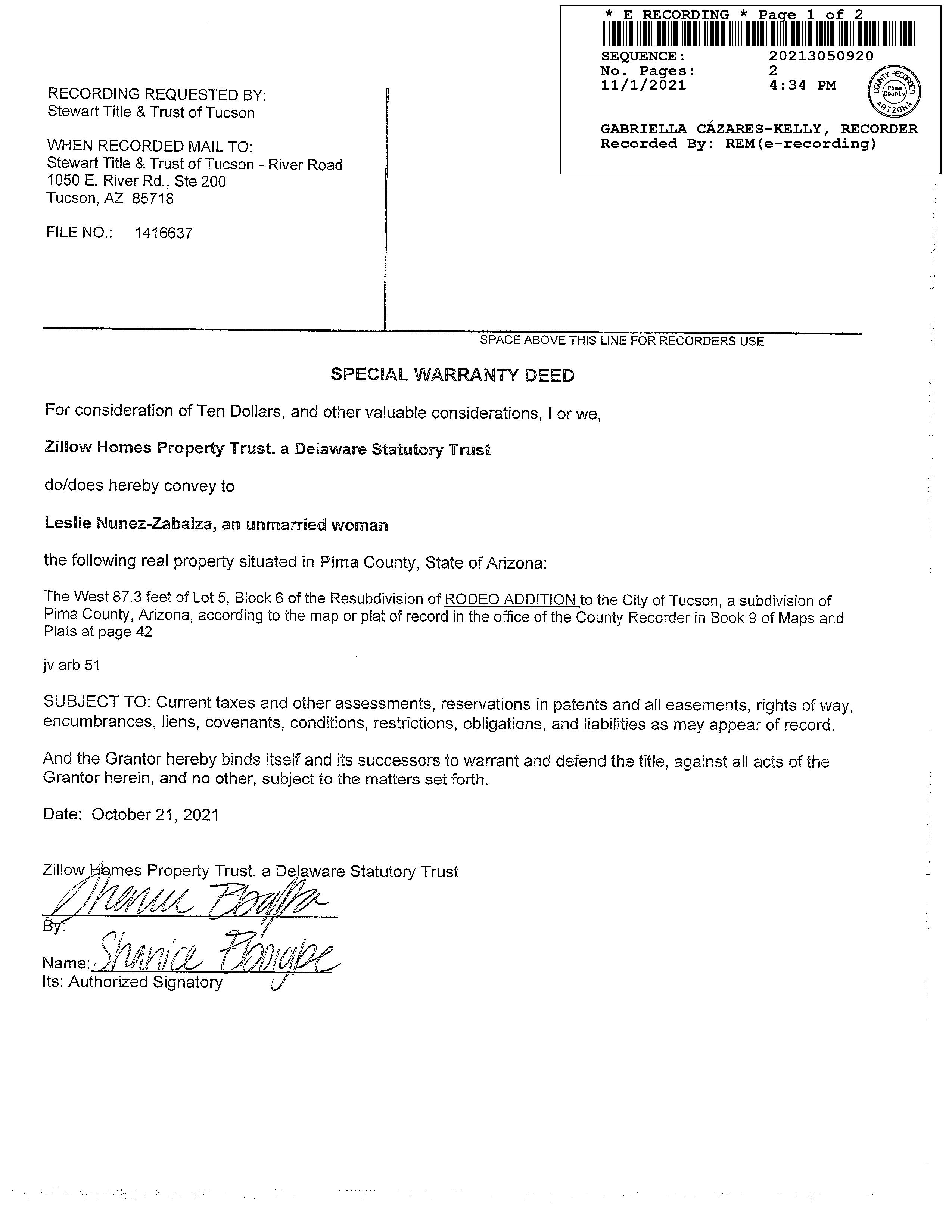 184,990 2021 3050920 SW ZILLOW HOMES PROPERTY TRUS 07/08/2021 196,108 2021 1890085 WD ARMIJO ARMANDO