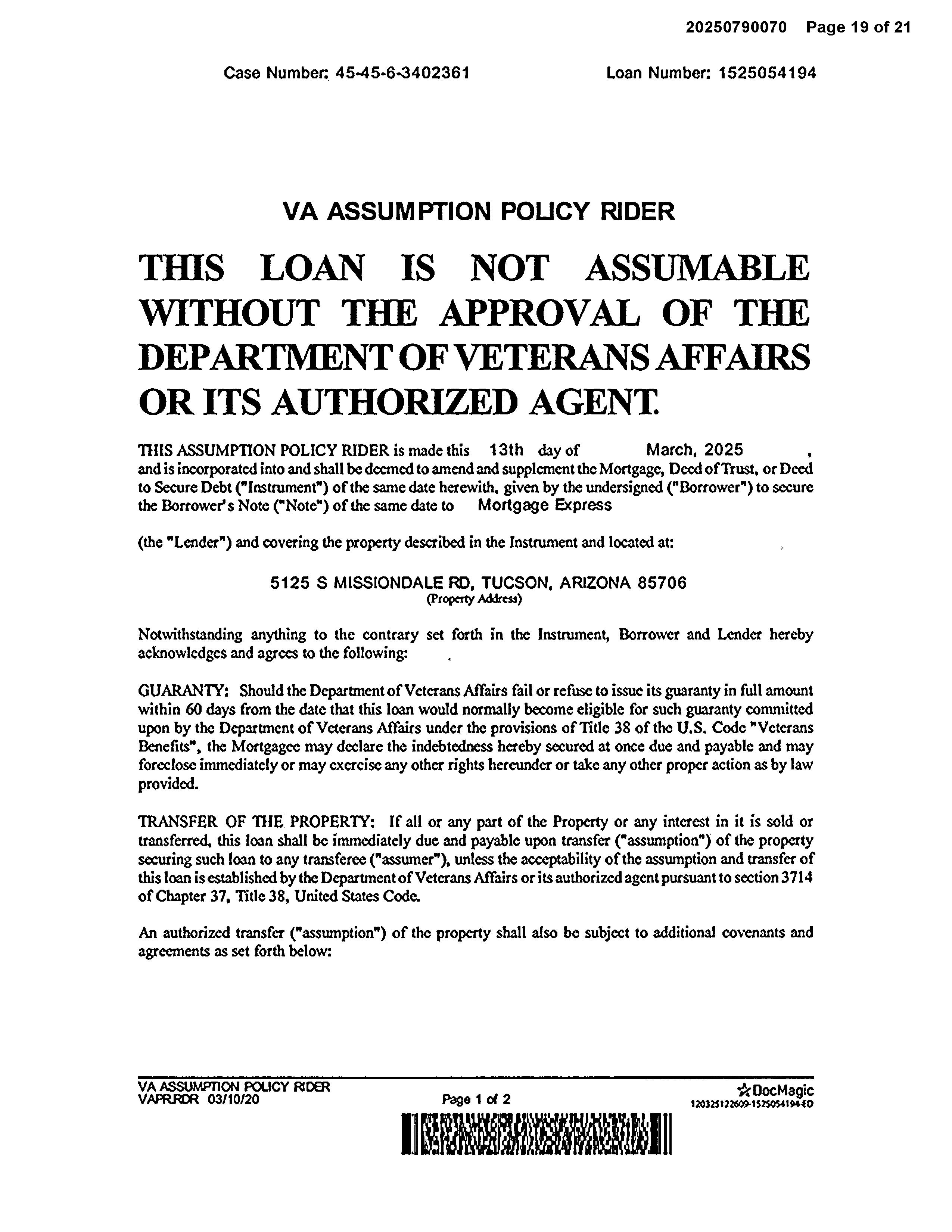 Mailing Address : 5125 S Missiondale Rd, Tucson AZ 85706-1337 C001