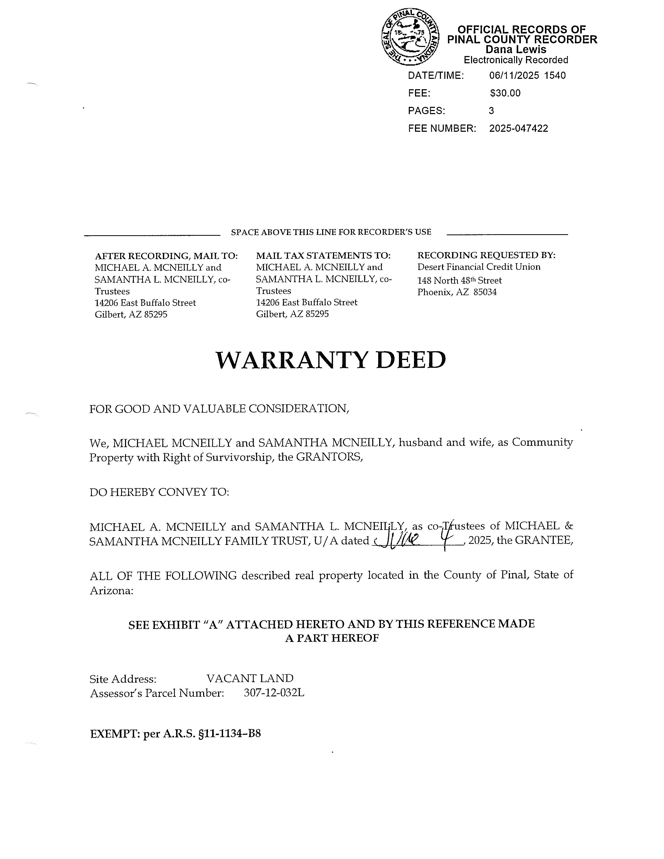 Vesting FamilyTrust RecorderDoc# 2025-047422 Book/Page