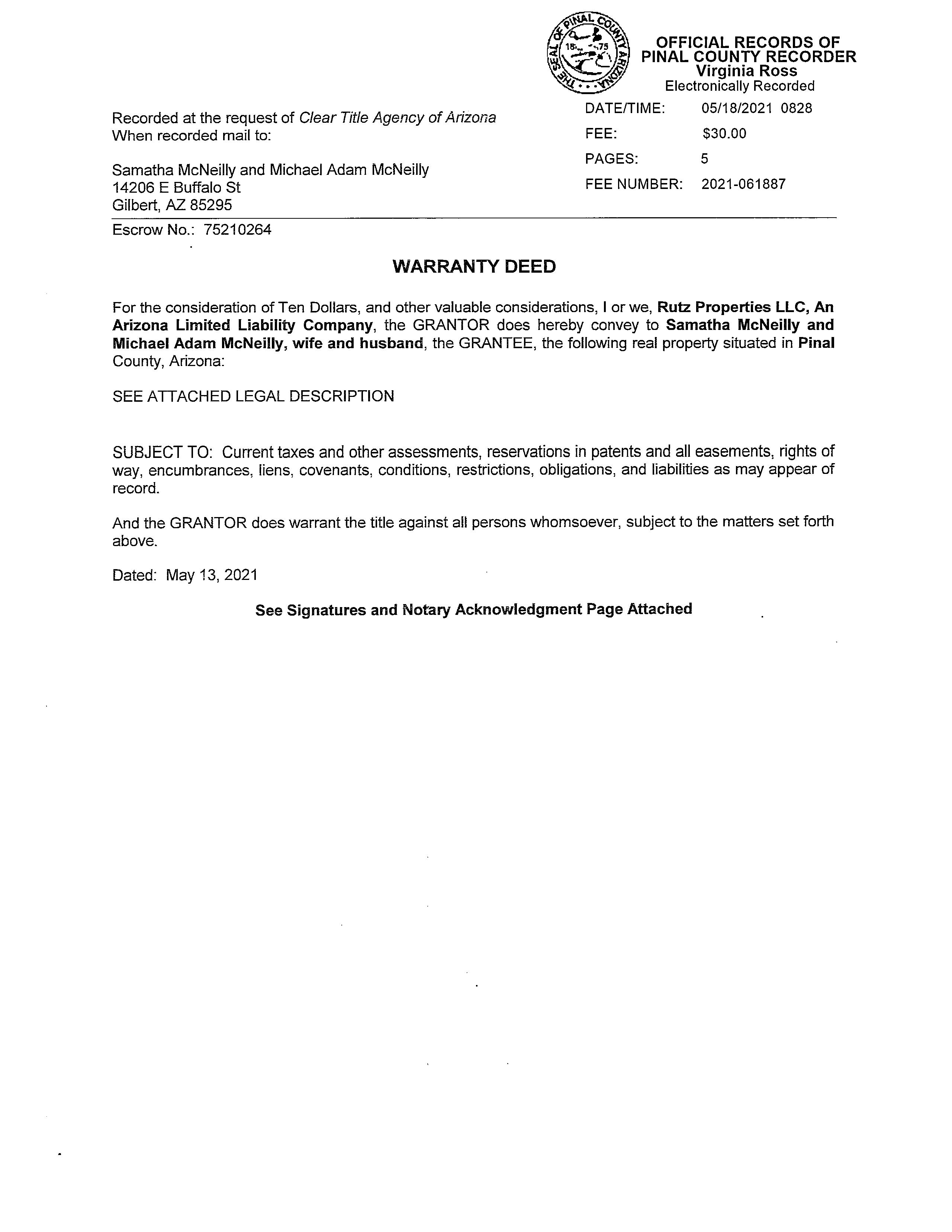 PrimaryOwnerName(s) MCNEILLY,SAMATHA;MCNEILLY,MICHAELADAM SalePrice $67,000 SaleDate 05/13/2021 RecordingDate 05/18/2021