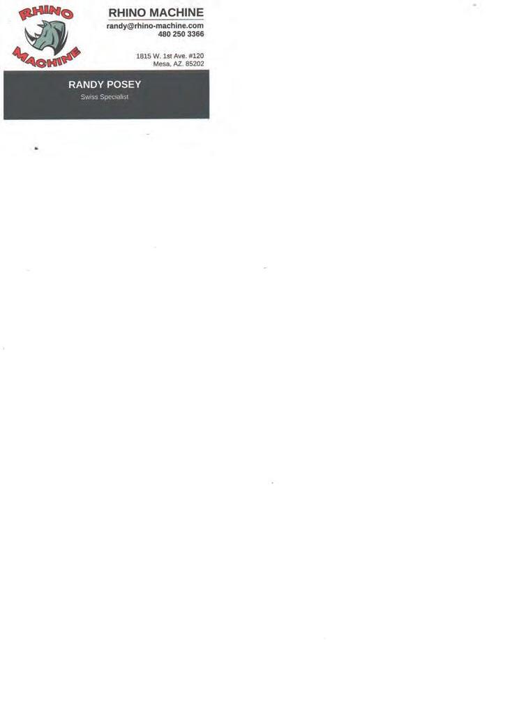 Renishaw............................................40,75 Resell CNC..............................................76 Rhino Board Waterjet..........................92 Rhino Machine......................................89 RMG Machining...............................6,85 RMSS............................ ...........................90 Rolamech Mfg.......................................89 Ron Grob................................................86 Royal Products.................................48,76 S.L. Fusco.................................................75 Samuel, Son & CO................................78 Sav-On Plating .........................90 Schenk Intertech................................... 74 SCHUNK ............................................... 79 Scriven Precision Fab. 82 Select Machining .................................. 88 Service & Sales.......................................92 Shaw Precision 86 Single Source Technologies 73 SMBHub ..................................................61 Sodick 73 Southwest EDM.....................................17 Southwest Swiss Prec........................... 88 SW Waterjet & Laser 39,91 Specialty Turn Products (STP) 12,90 SPRINGWORKS Utah ..................... .93 StarRex Precision 88 Star Metal Fluids 13,76-80 Stellar Industrial.................................... 75 Stevens Engineering .............................77 Stewart Precision Manufacturing 84 Sulli Tool & Supply .........................................79 Superior Grinding...........................44,86 TCI Precision Metals 78 The SMBHub 52 TJ Snow ...........................................................27 TMM Precision 82,85 T-N Machining 88 T.S.M. Mach. ......................................... 73 Takashi Sato 88 Tech Financial Services 69,80 Tech Five Machining ............................87 TechMark................................................ 85 The Metal Man 82,85 The Tool Crib Inc.................................. 79 The Werks C&C.................................... 78 Thinbit...................................................3,79 Thompson Machine 84 Total Quality Sys ....................................77 Totten Tubes 79 Tram-Tek Inc. 88 Tube Service ............................................77 TVT Die Casting 68,85 TW Metals...............................................77 United Performance ............................ 78 Universal CNC Repair 81 U S Shop Tools 76 Uni-Tek ....................................................87 Val-Tech Mfg..........................................84 Valley Machine Works 85 Vero Software......................................... 79 VonRuden..........................................78,80 Wal-Tek Industries 92 Washington Calibration 74 Weiser/Mile High Precision .............. 85 Westcott Designs 66-67 Western Cast Parts 82 Western Sintering Co .......................... 93 Western State Bank 79 Western States Metal 68,80 White’s Niche Products........... 58-59,75 Whitley Machine .......................10,85 Wrico 30,84 Yellowbird.com.......................................81 Zeis Metrology ...................................... 74 Kyocera 76 L&W Machine Co. ............................. 87 Landmark Solutions ......................25,75 Latitude Machinery 74 LAUBE Technology 77 Layke Inc 83 Leach Laser............................................87 LEI Machining ..................................... 88 LK Metrology ....................................... 45 Lone Arrow 76 Louie’s Black Oxide 84,86 LRW Cutting Tools 79 LTM Plastics ....................................60,86 Lucy’s Machine Company ................ 76 LV Swiss 92 Lynch Brothers 86 Machinery Resources 73 Magnum Prec.................... ..11,73-75,95 Makino ................................................... 73 MAKstride ............................................ 83 Manufacturing Technology (MTI) 68 Martin Engineering 81 MarZee 8,85,92 Mario Pinto ........................................... 80 Matrix Machine ..............................82,83 Matsuura 73 Mesa Machinery 66,75 Metalcraft Inc. 87 Metals Eng & Testing Labs ............... 83 Methods West..................................74,75 Metzfab 21,91,93 Midaco Corp 83 Milco 83 Mistras (Semiray) ...........................34,83 Mitutoyo ...........................................57,75 MLC CAD Systems ............................ 80 Moore Tool & Die 84 Morsch Machine 82 MP Systems 76 MPC Machines .................................... 88 NAI Horizon.........................................63 National Grinding & Mfg. 85 Nelson Engineering 62,84 New Angle Media 82 New Mexico Metals ............................ 78 NFP Property & Casualty ................. 80 North-South .........................33,73,74,76 NTK Cutting Tools..............................76 Osborn Products 83,85 P4 Swiss Lindel 87,91 Paragon Machining & Design ......... 89 Paramount Honing Machine........... 87 Perfection Industrial Finishing 90 Phoenix Fab & Design 87 Phoenix Grinding 83 Phoenix Heat Treat ............................. 86 Phoenix Waterjet & Laser ........... 16,90 Phreedom Technologies.............. 69,80 Pilkington Metal Finishing 92 Pioneer Distributing Co. 83 Platinum Registration 10,80 Port Plastics ........................................... 78 Powill Mfg ............................................. 86 PPE Engineering 93 Precision Aerospace 93 Precision Die & Stamping 28,82 Productivity, MMT ........................31,73 Pro Lift Rentals......................................81 PRO-TEK 83 Qualichem, Inc ...................................77 Quality Improvement Consulting........81 Quality Measurement Services..............93 Quality Mold..........................................85 R&D Gage...............................................26 Reiter’s Custom Welding...............18,92 Davis Metals ...................................22,92 DCM Tech............................................74 Delta Technology............................