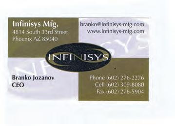 3D Machine ................................82 A1 Precision Metal & Aerospace......65,84 AAE ...............................................91 Abrams Airborne Mfg..............................85 ABS Metallurgical .................................61,86 ACC Machinery .........................................73 Acieta.............................................................. 73 Adams Machinery ...................49,71,73,96 Advanced Precision .................................. 80 AEI Fabrication...........................................92 Aero Spring & Mfg ........84 Aero Tech 89 Air Gear ......................................................... 86 Alerus ................................................................9 AllFab Engineering 85 Allied Tool & Die 83 Alpha Machine 91 Alpha Mfg Solutions (AMS) .............. 87 American Aerospace (AATC)...............83 American Tools & Metals..................74,75 Americhem Engineering 75 ANEWCO 88 Apache Gear 85 Apache Steel ..................................................77 Arizona CNC .................. 7,19,35,73-76,78 Arizona Finishing 86 Arizona Tool Steel 78 Arizona Wire & Tool ................... .............93 ASU Engineering .......................................38 ATEC Engineering.....................................93 Auer Precision 85 Avtek 88 Axian Technology 82 Ayers Gear & Machining.........................71 AZ Metals ............................................... 57,76 AZMF Precision.........................................92 B&T Tool & Engineering 79 Banterra Bank.................................2,81 Barton International 48,76 Basic Metals ........................... 1,36-37,68,78 Beau’s Crates................................................ 80 BEL Machining 84 BID Machine, Inc 84 Big O Metals 29,84 Blaze Precision.............................................83 Blue Streak Grinding ..........................54,85 BMSC .......................................................70,83 Bolts Metallizing-CWST 83 Bralco Metals..........................................76,77 Bramac Machinery 74 Bystronic ....................................................... 74 C&M Rigging ........................................20,81 Capital Metal Finishing 91 Cassavant CAP 36,93 Cassavant Machining 90 Castrol Industrial....................................... 76 CBIZ............................................................... 80 Challenger Aerospace...............................87 ChemResearch(CRC) 64,87 CIS 82 Cleveland Electric Labs 89 CNC Pros ....................................23,73,75,77 Coast Aluminum.................................26,77 Coastal Metals.......................................38,78 Coating Tech....................................... 72,83 Collins Metal Finishing............................83 Consolidated Resources....................50,80 Continental Machining.................................88 Continental Precision.........................86,87 Controlled Thermal Tech................32,86 Craters & Feighters...................................80 Crating Tech................................................72 Creedbilt Inc................................................93 D & R Mchy.........................15,51,73,74,79 DATRON.....................................................75