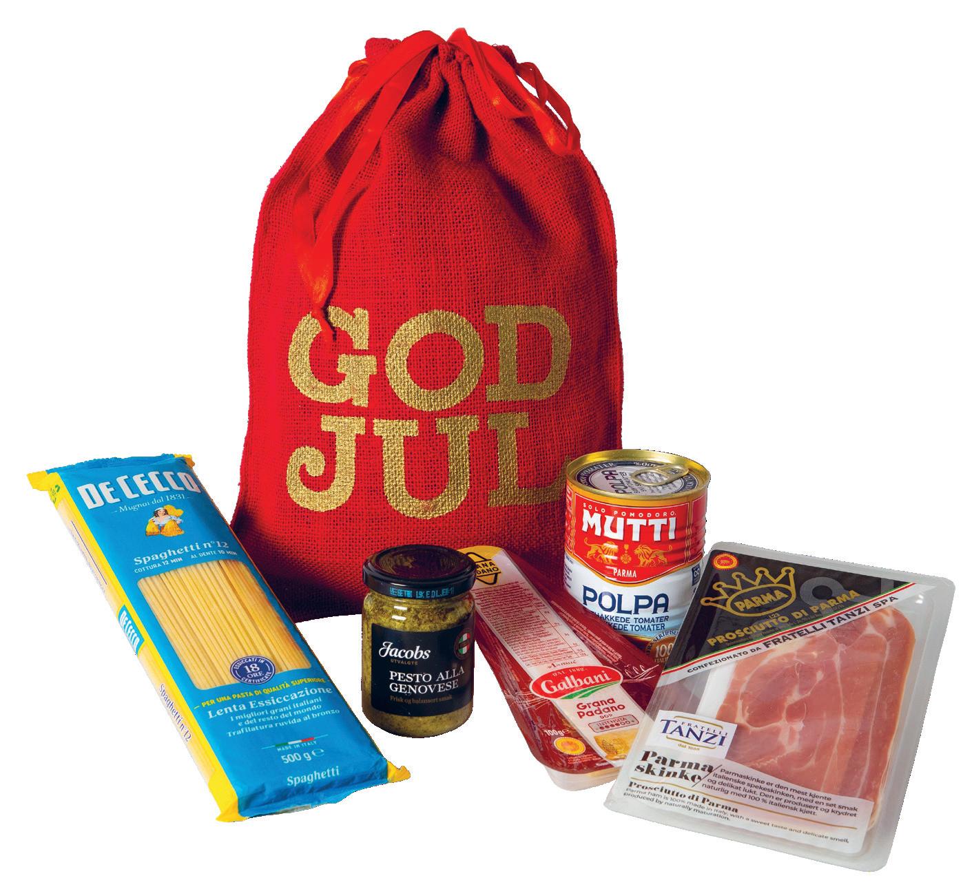 Smakfull gavepakke med klassiske delikatesser. Kombinerer italiensk matkultur med julens små gleder. Denne smakspakken byr på alt man trenger for å lage et smakfullt måltid – toppet med søte fristelser og julete stemning. Perfekt som og omtanke.