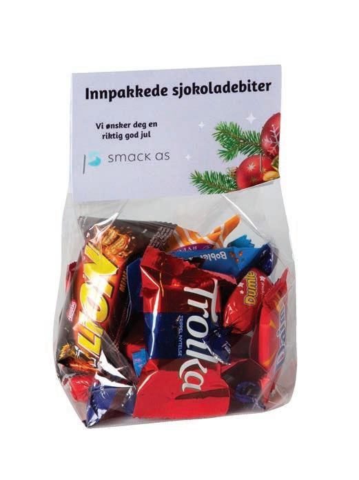 Overrask ansatte, kunder eller samarbeidspartnere med en elegant cellofanpose fylt med innpakkede sjokoladebiter. Innpakkede