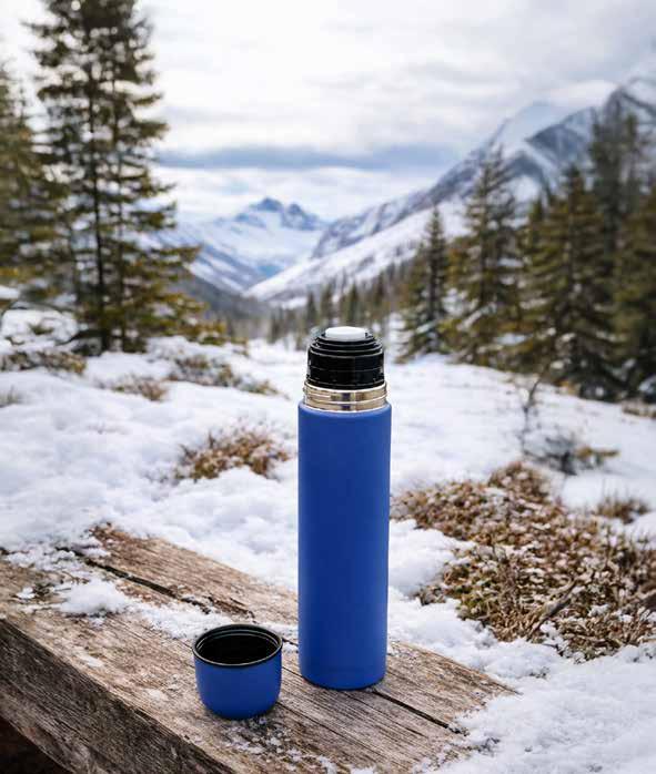 Dobbeltisolert, solid og pulverlakkert ståltermos i to størrelser. Termosen holder drikke kald opptil 24 timer eller varm opp til 12 timer. Skrukork med trykk-knappåpning. Leveres i gaveeske.