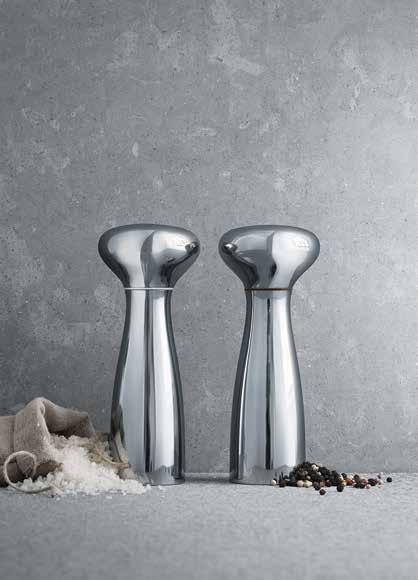 Alfredo salt- og pepperkvern er laget av rustfritt stål. Begge kvernene er utstyrt med mekanismen ”AllGrind – Ceramic Technology”, som garanterer et slitesterkt produkt av høyeste kvalitet.
