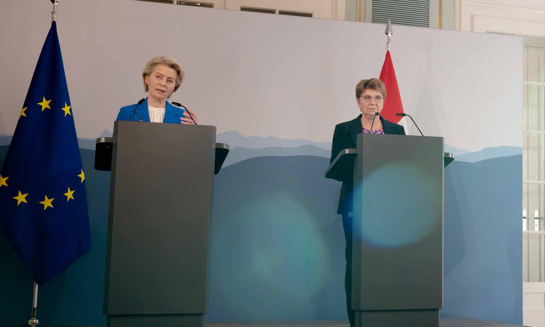 È un segnale forte e positivo «che la Svizzera e l'UE siano riuscite a raggiungere un accordo». Queste le parole della presidente della Confederazione dello scorso anno, Viola Amherd, durante la conferenza stampa con la presidente della Commissione europea Ursula von der Leyen.