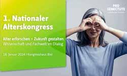 Mit dem nationalen Alterskongress bietet Pro Senectute Schweiz am 18. Januar 2024 in Biel die Gelegenheit, Fachwissen aufzufrischen, das Netzwerk zu pflegen und Persönlichkeiten aus Wissenschaft, Politik, Behörden und der Fachwelt zu treffen. Referate und Podiumsdiskussionen werden die Themen soziale Sicherheit im Alter, die Herausforderungen der demografischen Entwicklung und die Auswirkungen von individuellen und gesellschaftlichen Altersbildern auf die Gesundheit im Alter ver tiefen. Der Kongress wird simultan auf Deutsch und Französisch übersetzt. Es hat nur noch wenige freie Plätze: w ww.alterskongress.ch
