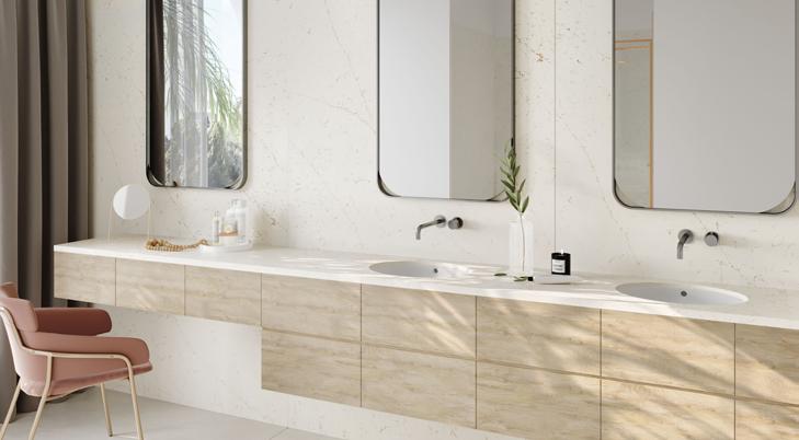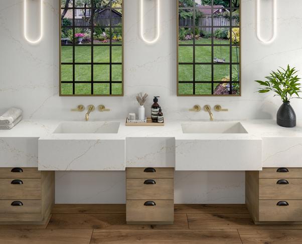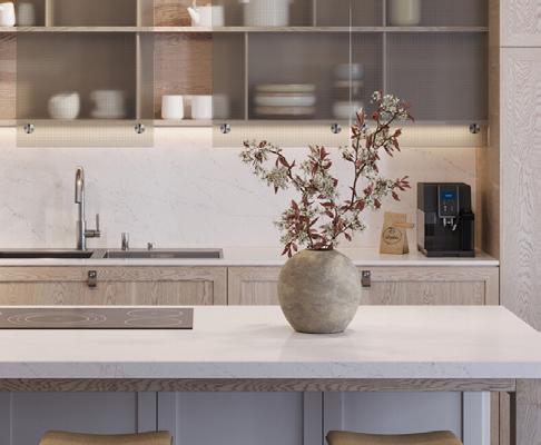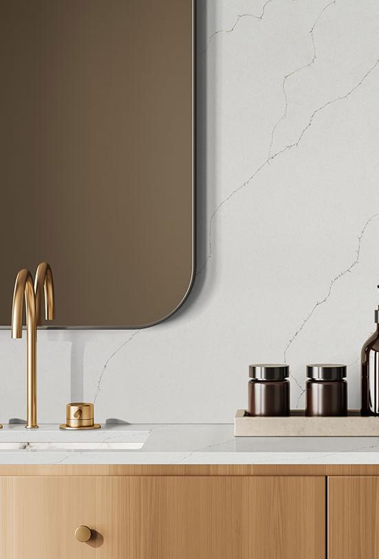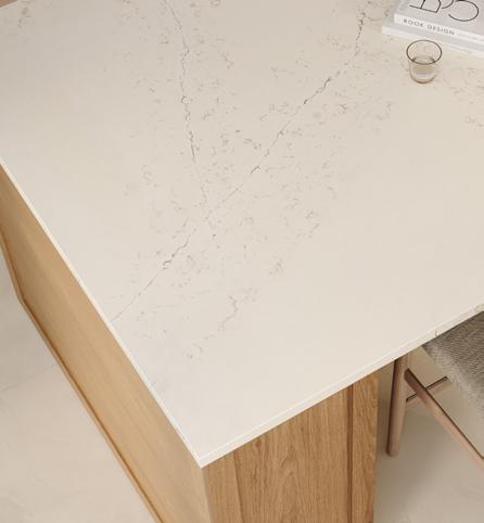 ProStone Elite’s bookmatched quartz offers a bold and seamless design statement by mirroring veining patterns across adjoining slabs to create a stunning, symmetrical effect. This technique enhances the natural beauty of the quartz, resulting in a visually captivating centerpiece ideal for feature walls, waterfall islands, and expansive surfaces.