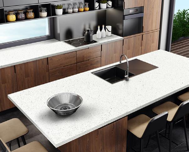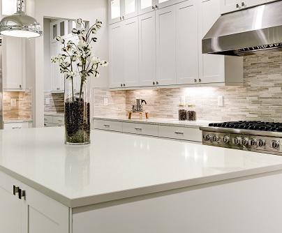 Quartz is more durable than concrete or granite and features a non-porous surface that resists stains and keeps its original beauty with very low maintenance. Quartz never has to be sealed and can handle spills and stains better than any natural stone countertop. This is the ideal product for an active household or a thriving commercial property.