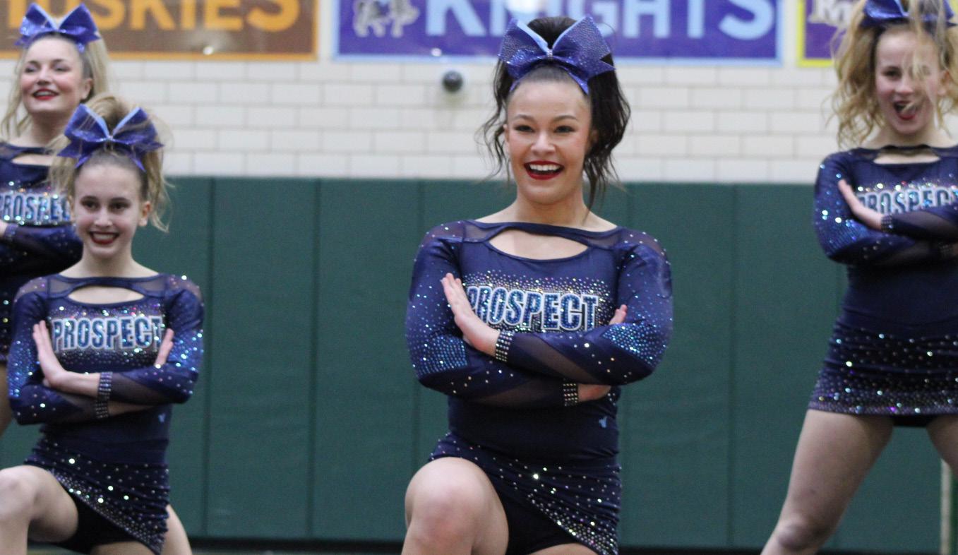 ALL SMILES: Senior Jadynn Cosma poses before the start of the routine at the MSL competion. Cheer has been dominating competitions, as they came in 2nd in MSL, followed by qualifying for state at sectionals. The state competition will be February 6-8 at Illinois State University. (photo by Tessa Trylovich) 2nd place in MSl 4th place at sectionals
