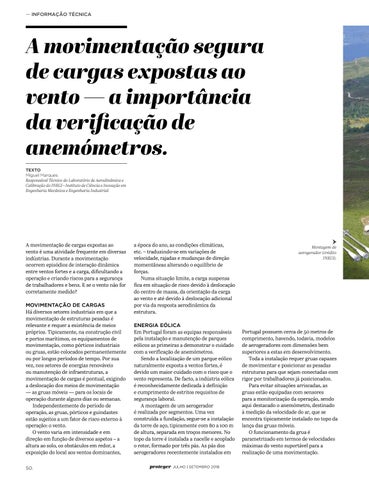 A movimentação segura de cargas expostas ao vento — a importância da verificação de anemómetros. TEXTO Miguel Marques Responsável Técnico do Laboratório de Aerodinâmica e Calibração do INEGI - Instituto de Ciência e Inovação em Engenharia Mecânica e Engenharia Industrial