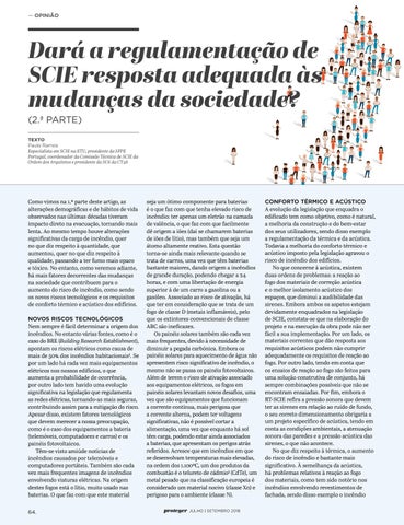 Dará a regulamentação de SCIE resposta adequada às mudanças da sociedade? (2.ª PARTE) TEXTO Paulo Ramos Especialista em SCIE na ETU, presidente da SFPE Portugal, coordenador da Comissão Técnica de SCIE da Ordem dos Arquitetos e presidente da SC6 da CT46