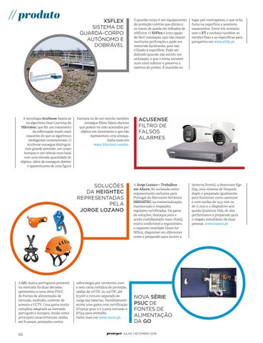 lanterna frontal, o descensor Ego D35, com sistema de bloqueio duplo e preparado igualmente para funcionar como ascensor e com cordas de 10,5 mm ou de 11 mm e o dispositivo anti queda Quantum D26, de alta performance e preparado para o resgate simultâneo de duas pessoas. www.lozano.pt