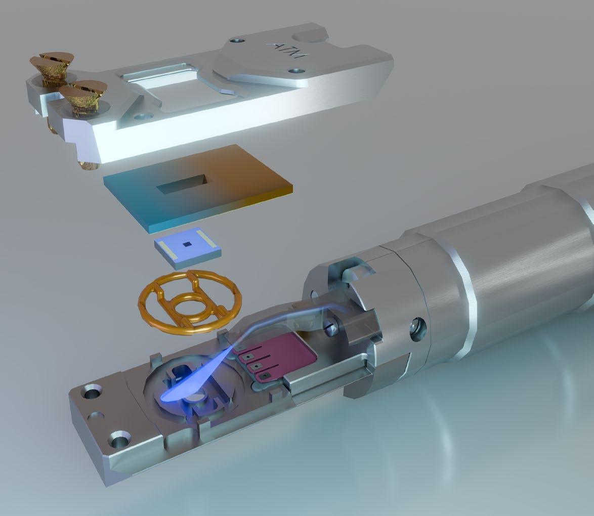 Sol features a factory-installed optical fiber integrated into the Atmosphere holder, to enable sample illumination during in situ TEM experiments. The holder supports wavelengths from 350 to 2000 nm, and can easily be connected to any compatible, userpreferred light source via a universal fiber input. This design offers users unprecedented flexibility to perform a wide range of light-induced experiments in relevant gaseous environments at the nanoscale.