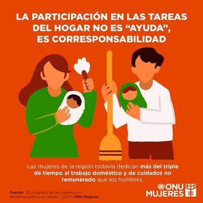 Reconociendo la perpetuación de roles y estereotipos que ubican a las mujeres y las niñas en el espacio doméstico y normalizan su responsabilidad en el trabajo de cuidados.