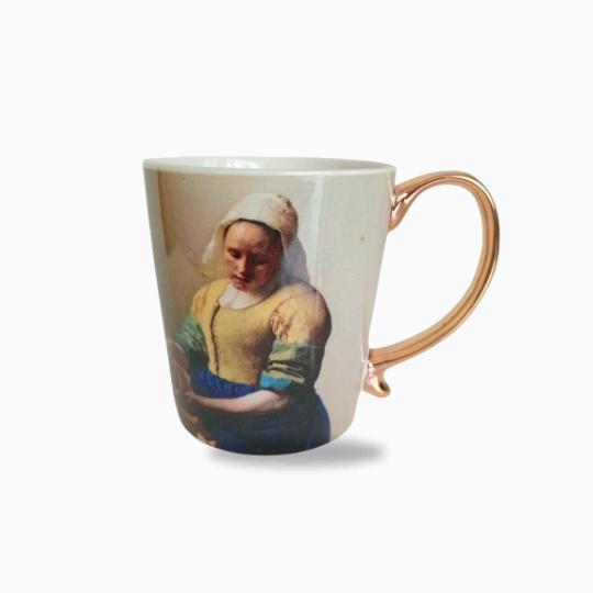This beautiful porcelain mug features an elegant gold handle, combining traditional craftsmanship with a modern aesthetic.