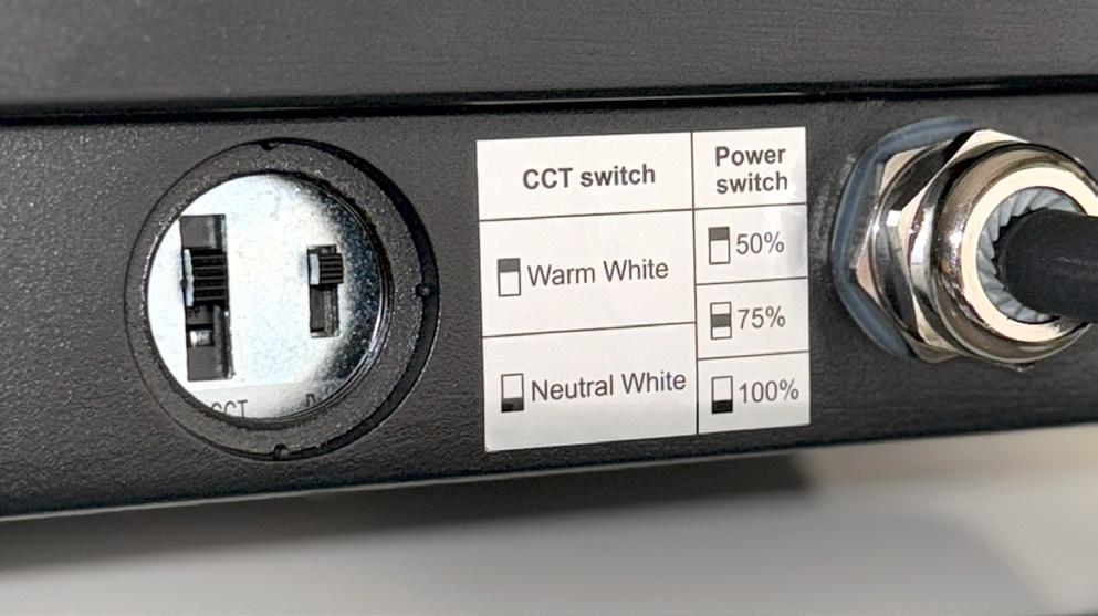 Tack vare magnetiska ändstycken justerar du enkelt både ljusflöde och färgtemperatur direkt i gaveln – välj mellan 3000K, 3500K eller 4000K via en smidig dip-switch.