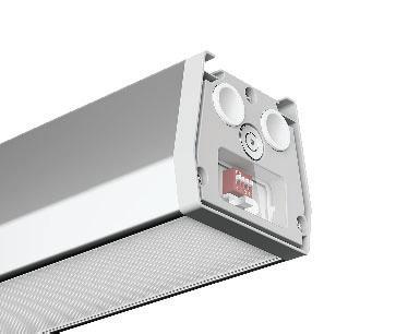 BTDA RS = langaton ohjaus; jokaisessa valaisimessa Bluetoothilla toimiva RS-tunnistin 3h turvavaloyksikkö on kytkettävissä helposti pikaliittimellä.