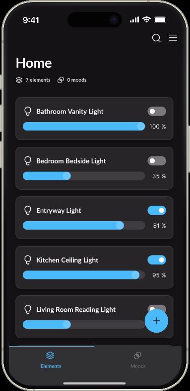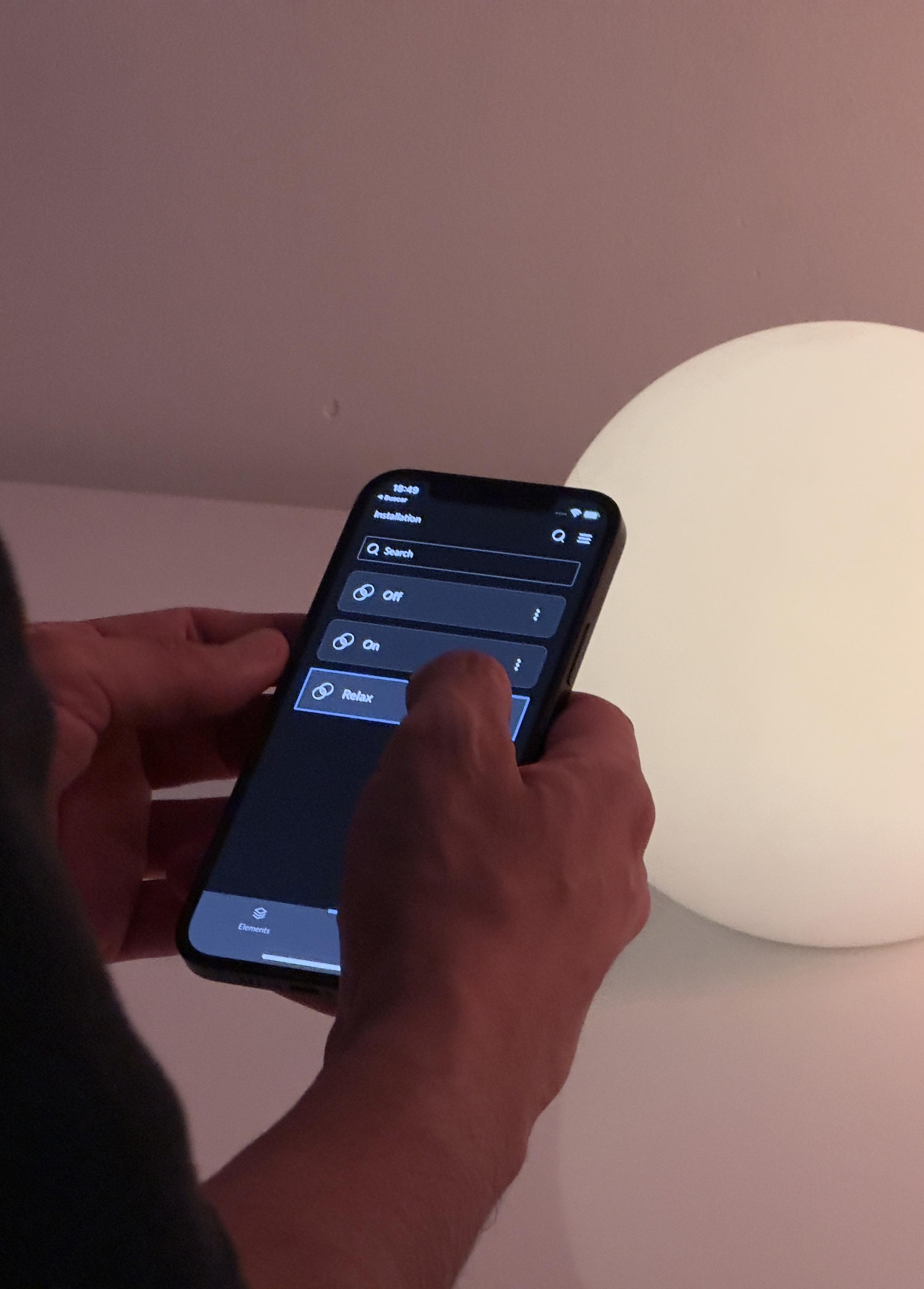 The Protopixel App allows you to connect to a Project tool installation running on a node on the same network. With this app, you can see and control all elements, spaces, moods, and behaviors of your lighting project, depending on their capabilities. You can also create moods and apply them, as well as create behaviors for buttons and sensors.