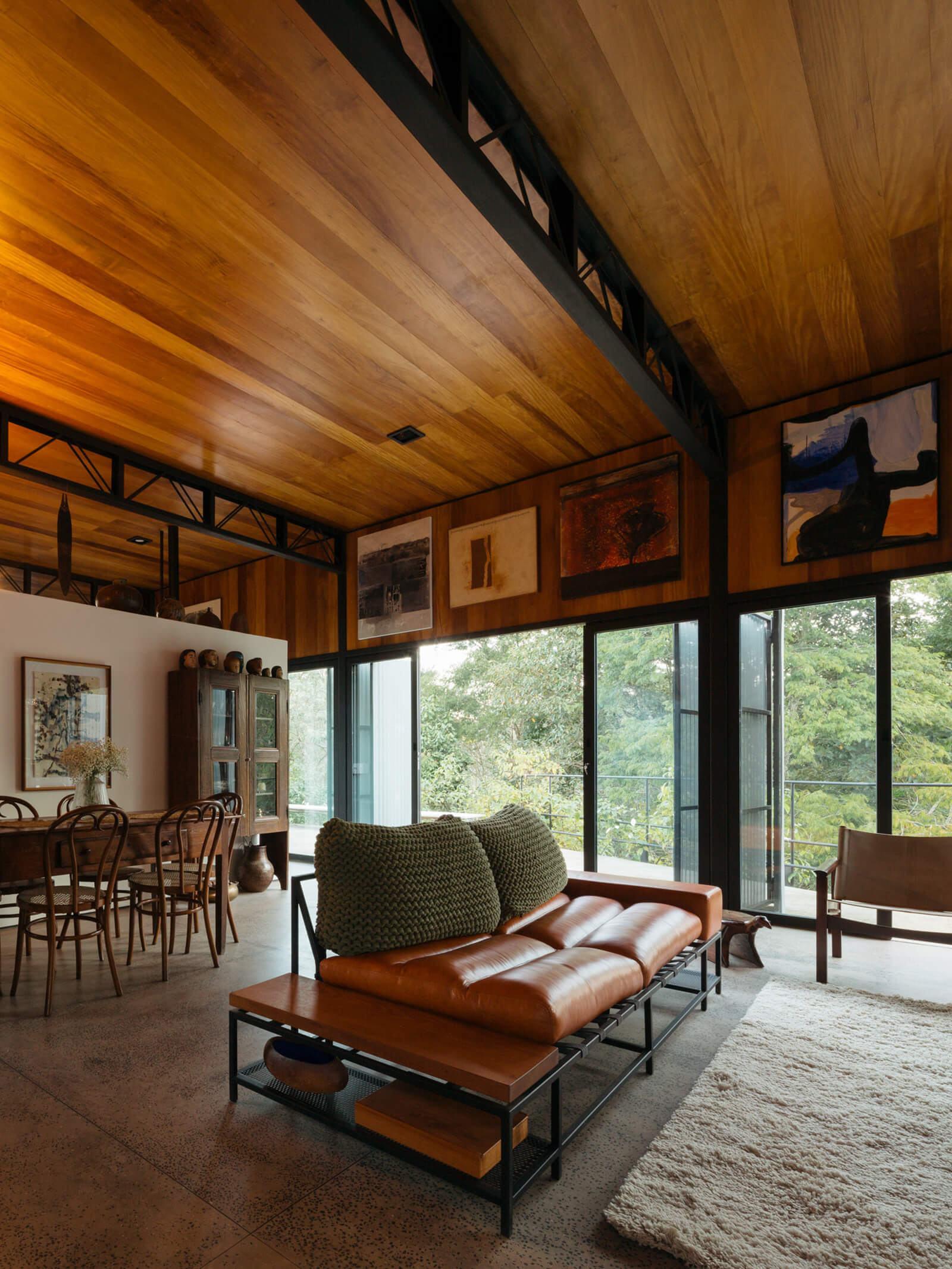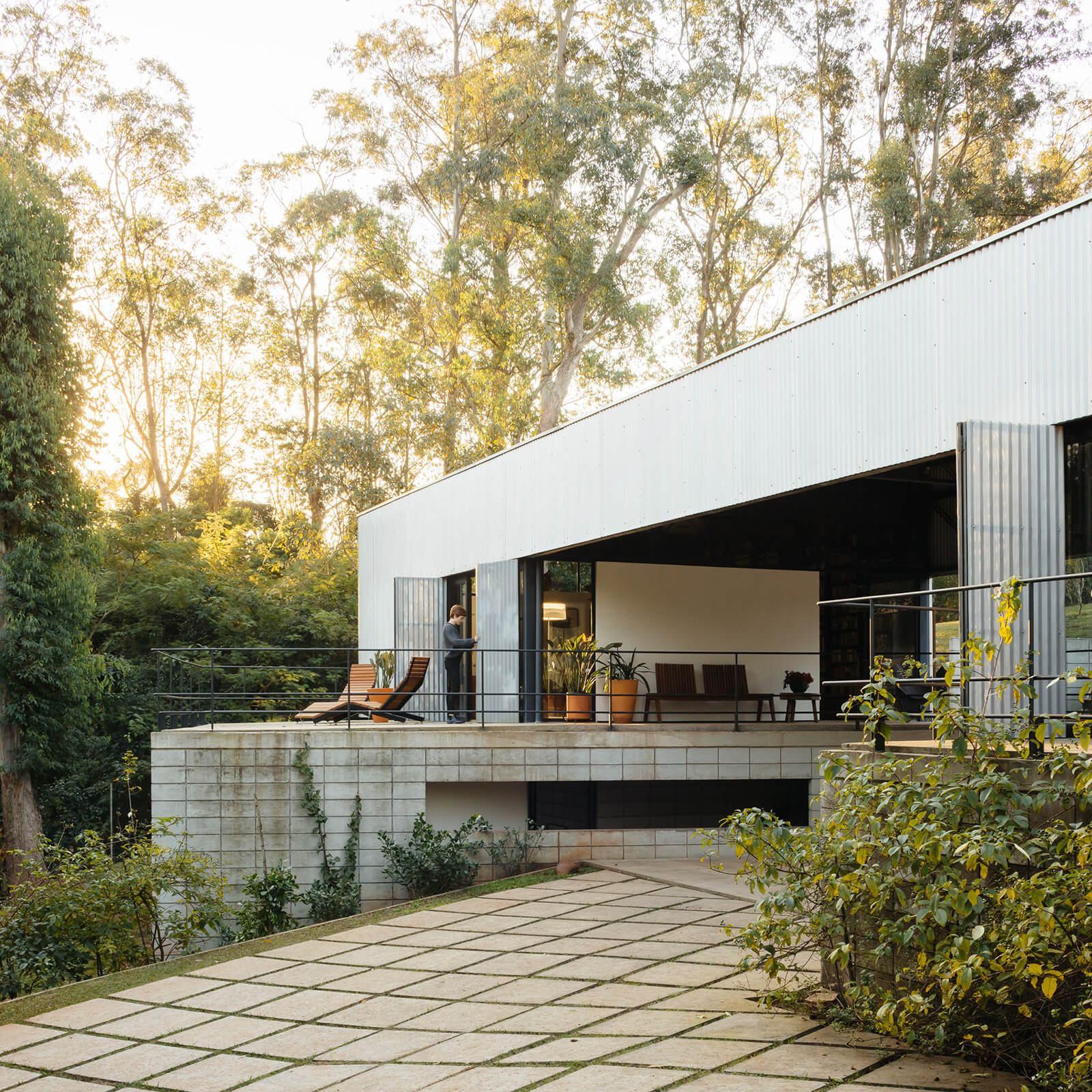 O pavilhão rústico integrado à natureza abraça a escolha de materiais naturais da Prototype.