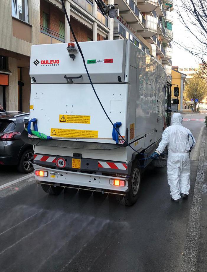 The machine, with a single operator and directly from the driver’s seat, can sweep and wash/sanitise at the same time and in a single operating step.
