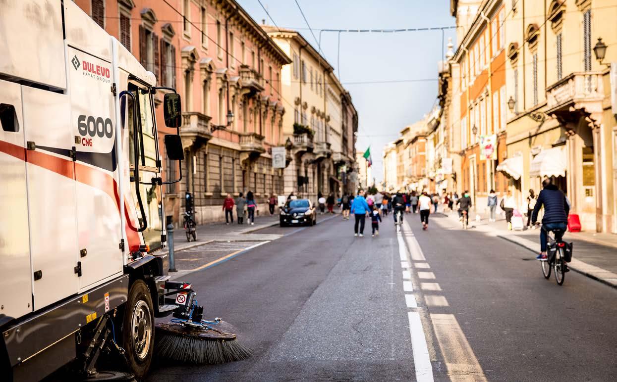 Dulevo’s mechanical vacuum system allows the machine to work while drastically reducing water consumption.