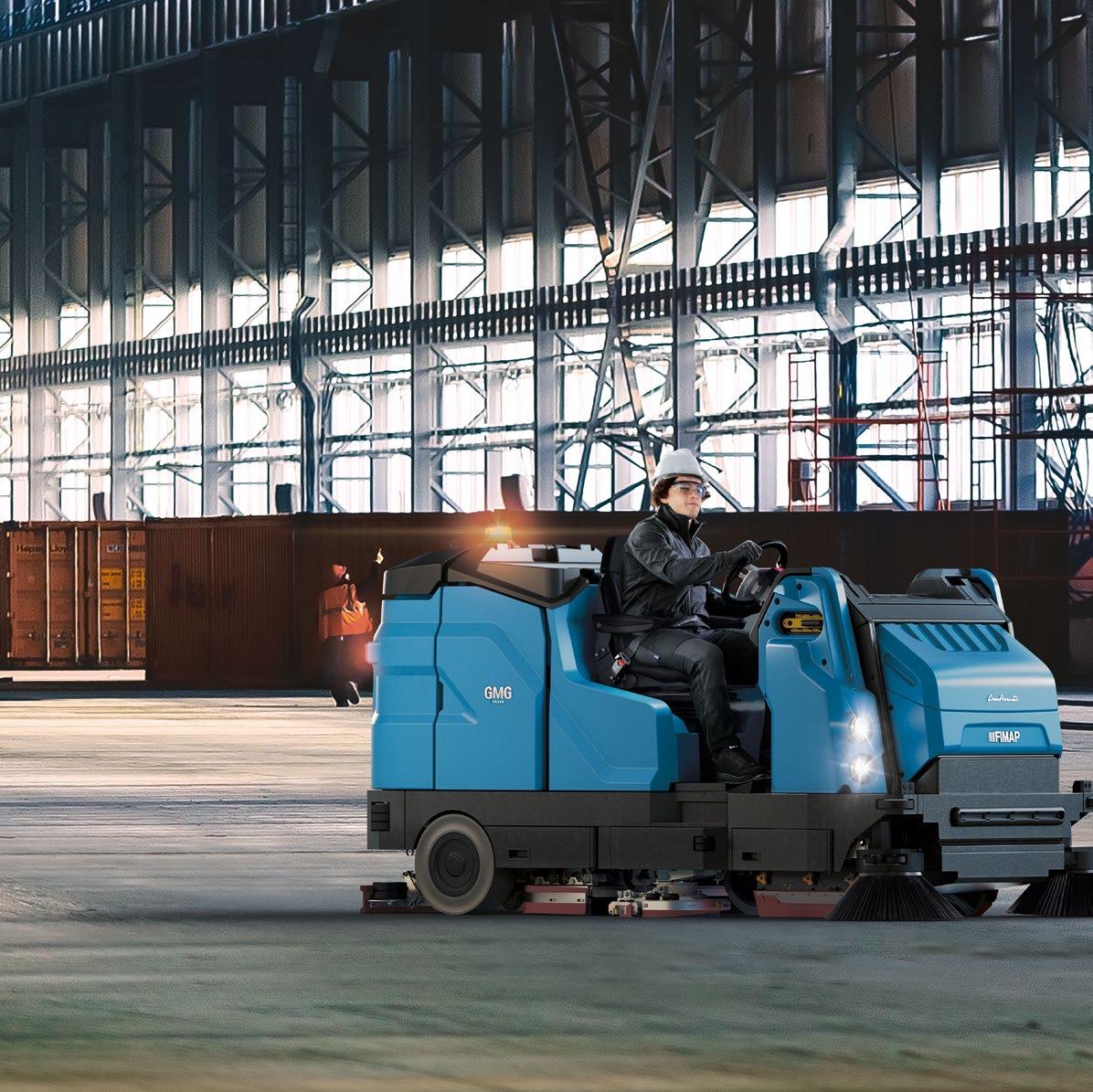The GMG Combinata does the work of a sweeping machine and a scrubbing machine in just one pass.