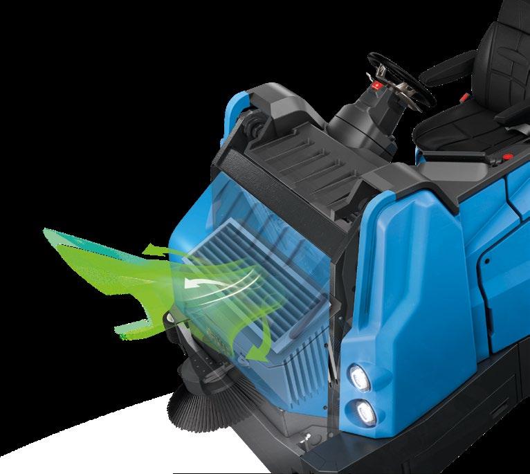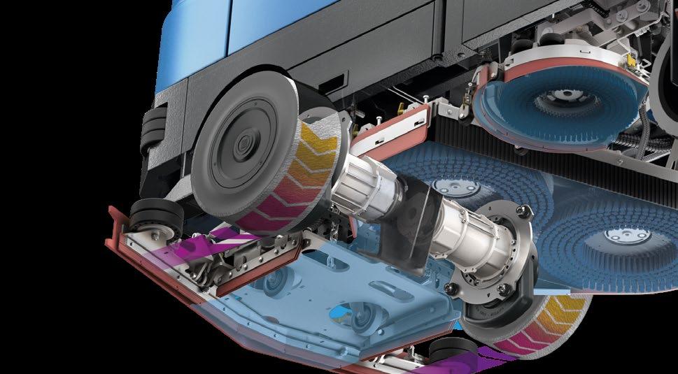 • Double productivity, by carrying out the work of a sweeping machine and a scrubbing machine in just one pass