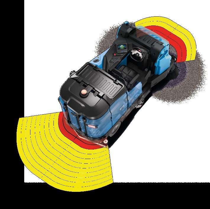 The front and rear sensors prevent collisions, by alerting the operator when approaching an obstacle