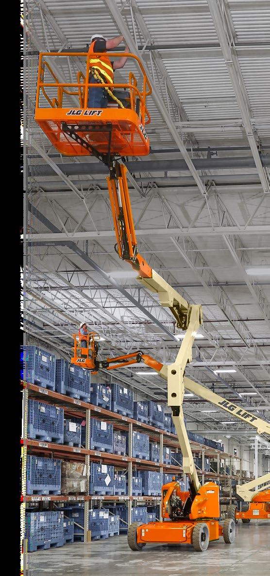 E Series booms are available in a range of platform heights and chassis widths—all with enhanced platform capacity—to help you find the perfect machine to suit your work environment. Plus, the exclusive JibPLUS® articulating boom option has a 180° range of side-to-side movement, providing you with even greater access to hard-to-reach places.