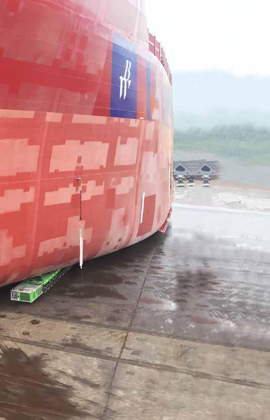 The SYT shipyard transporter is the ideal vehicle, ergonomically designed for the safe and efficient transportation of ship sections, plates, ship machines and other heavy shipbuilding components. The vehicle offers maximum flexibility thanks to its ability to be coupled with larger or smaller units, and its suitability for concentrated and distributed loads.