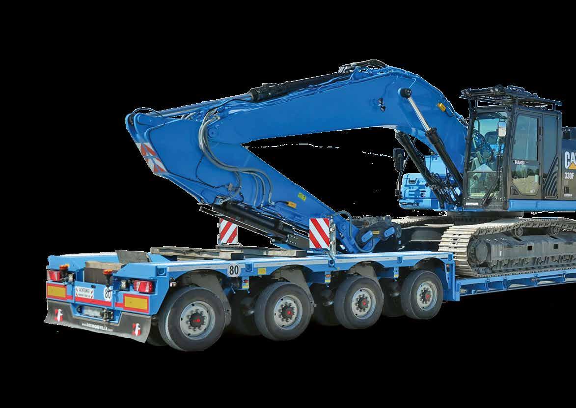 The MAX100 is a 2 to 6 axle semi trailer, which is also available in extendible versions. MAX100 has been designed for special transport within the fields of industry, construction and public works. MAX110 is the version of the MAX100 with hydro-mechanical steering.