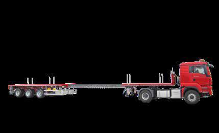 TimberMAX is a semi-trailer with 2 or 3 axles, optimised for the transportation of short wood and logs. The vehicle is designed so that it is ideally manoeuvrable for on and off-road use – optimal for challenges when doing forestry work, both pushed together and telescoped. When loading or steering, the bogie ensures optimum stability with consistently high manoeuvrability.
