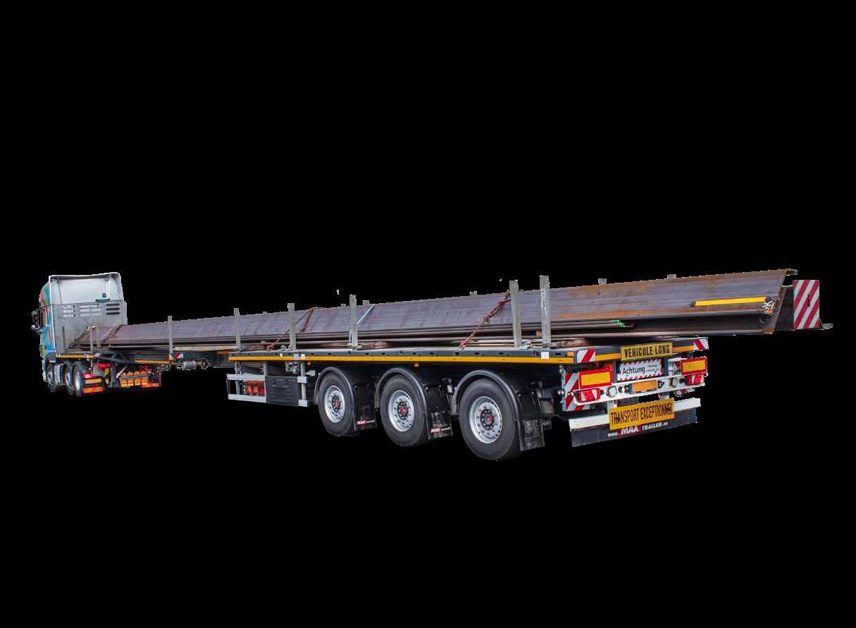 The range consists of 2-axle to 6-axle trailers. All vehicles have a standard width of 2,540 mm and are partly telescopic. The standard model is equipped with air suspension and is available with rigid axles, with friction steered or hydro-mechanically steered axles.