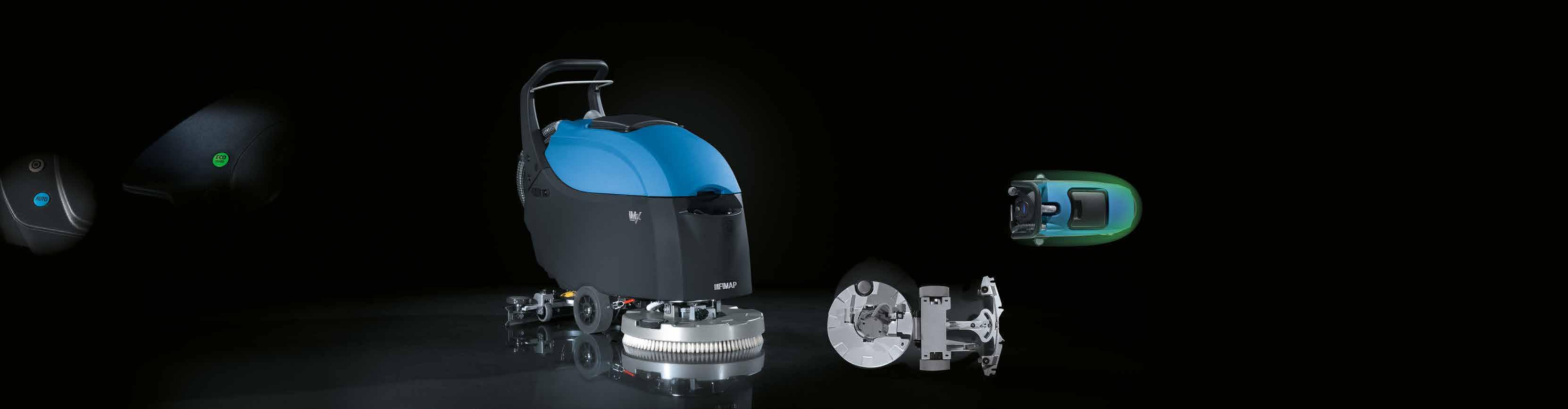 The compact design of iMx ensures high visibility during manoeuvres, and while cleaning along walls or around obstacles device that activates at the same time vacuum, brush and water flow