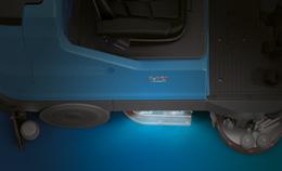 Right-hand side scrubbing brush Super-elastic wheels BLUE SAFETY SPOTLIGHT