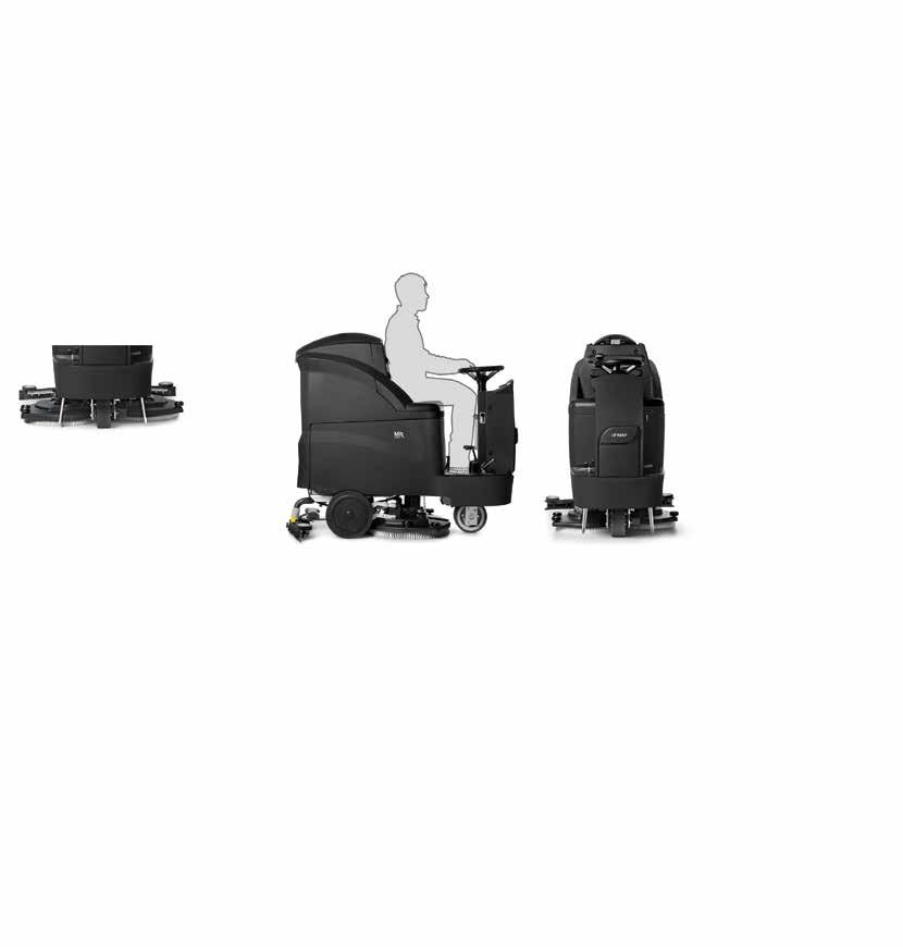 Sit on and Start! Turn on water and lower the brush head and the squeegee