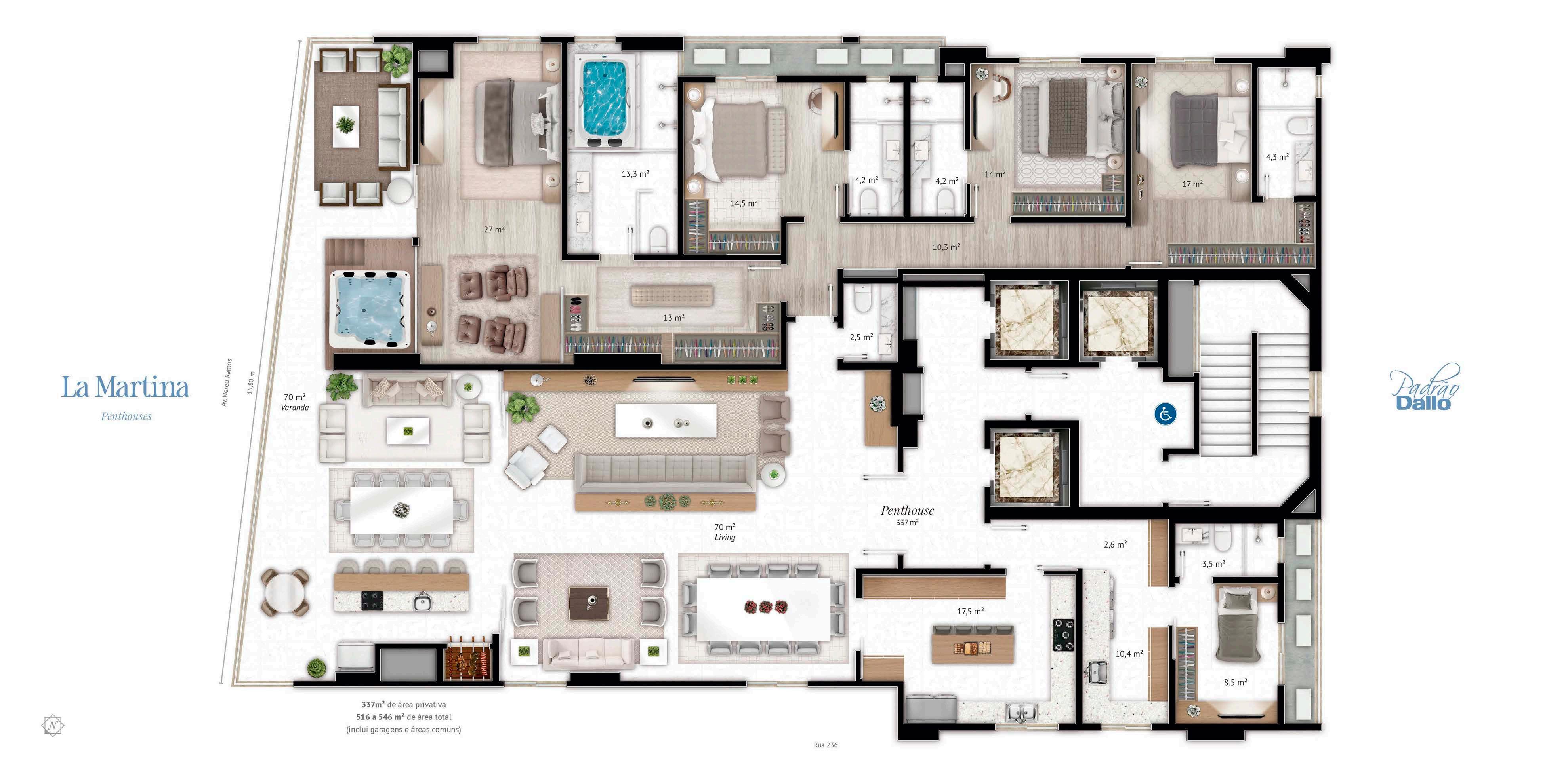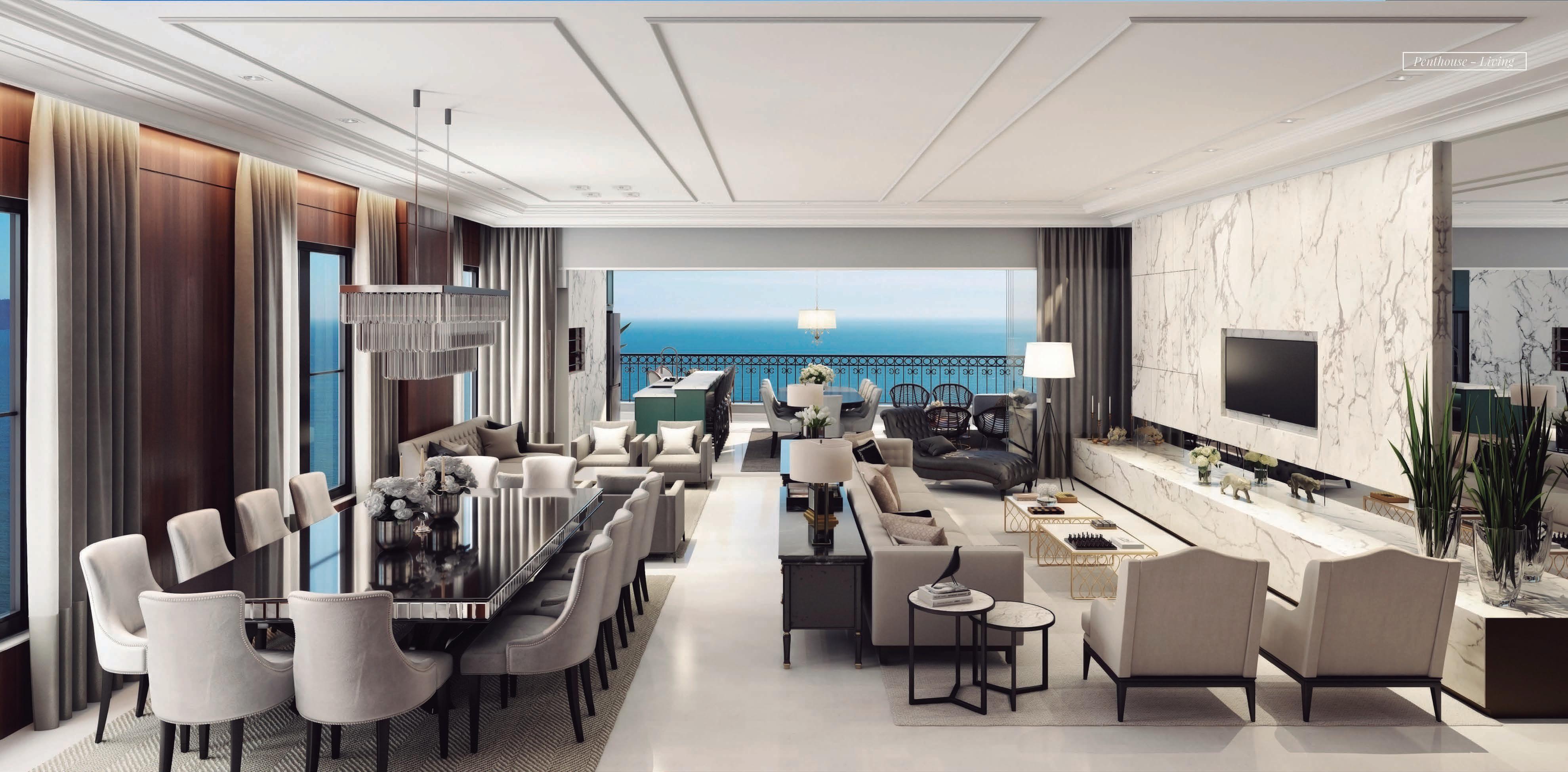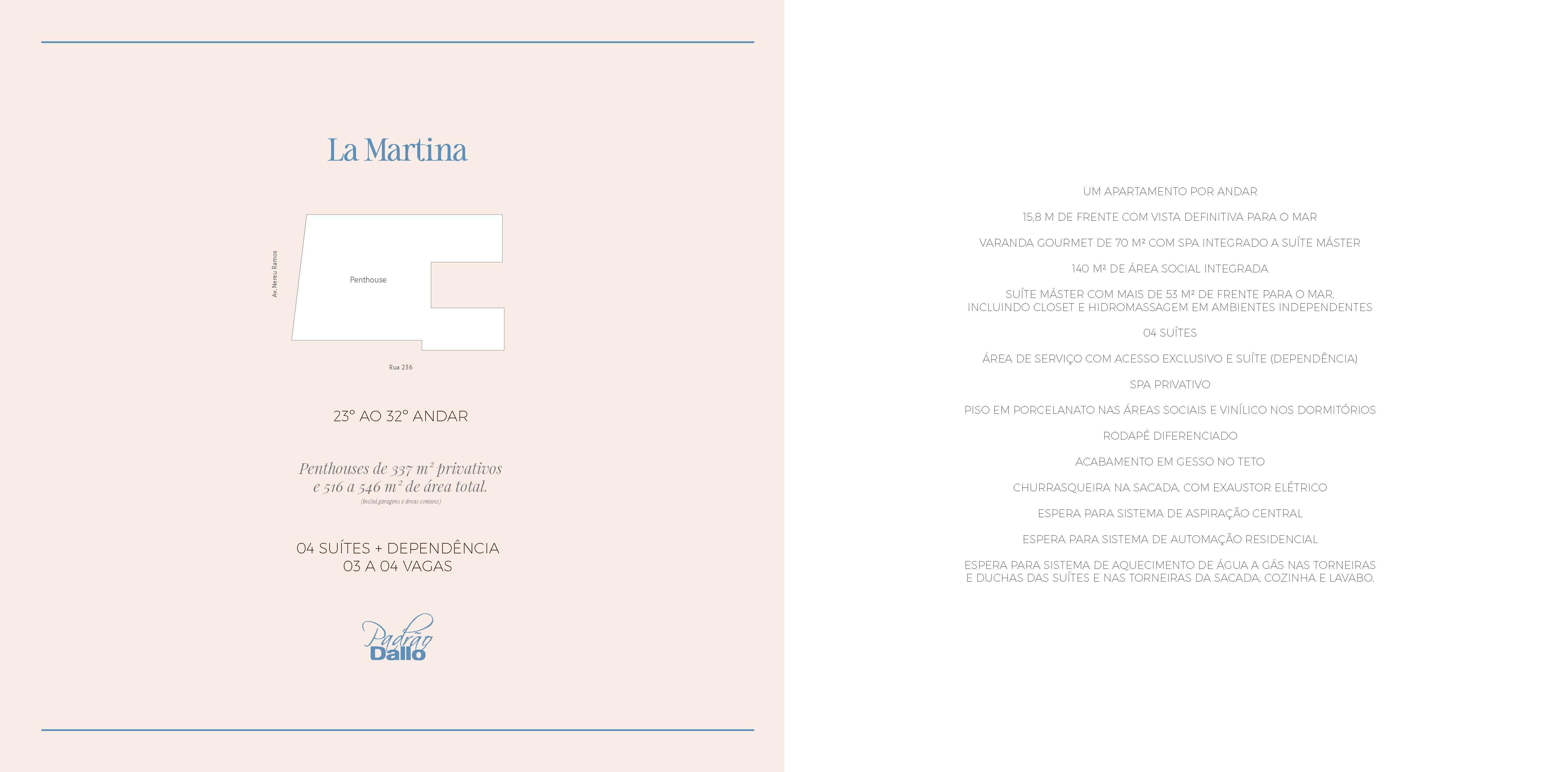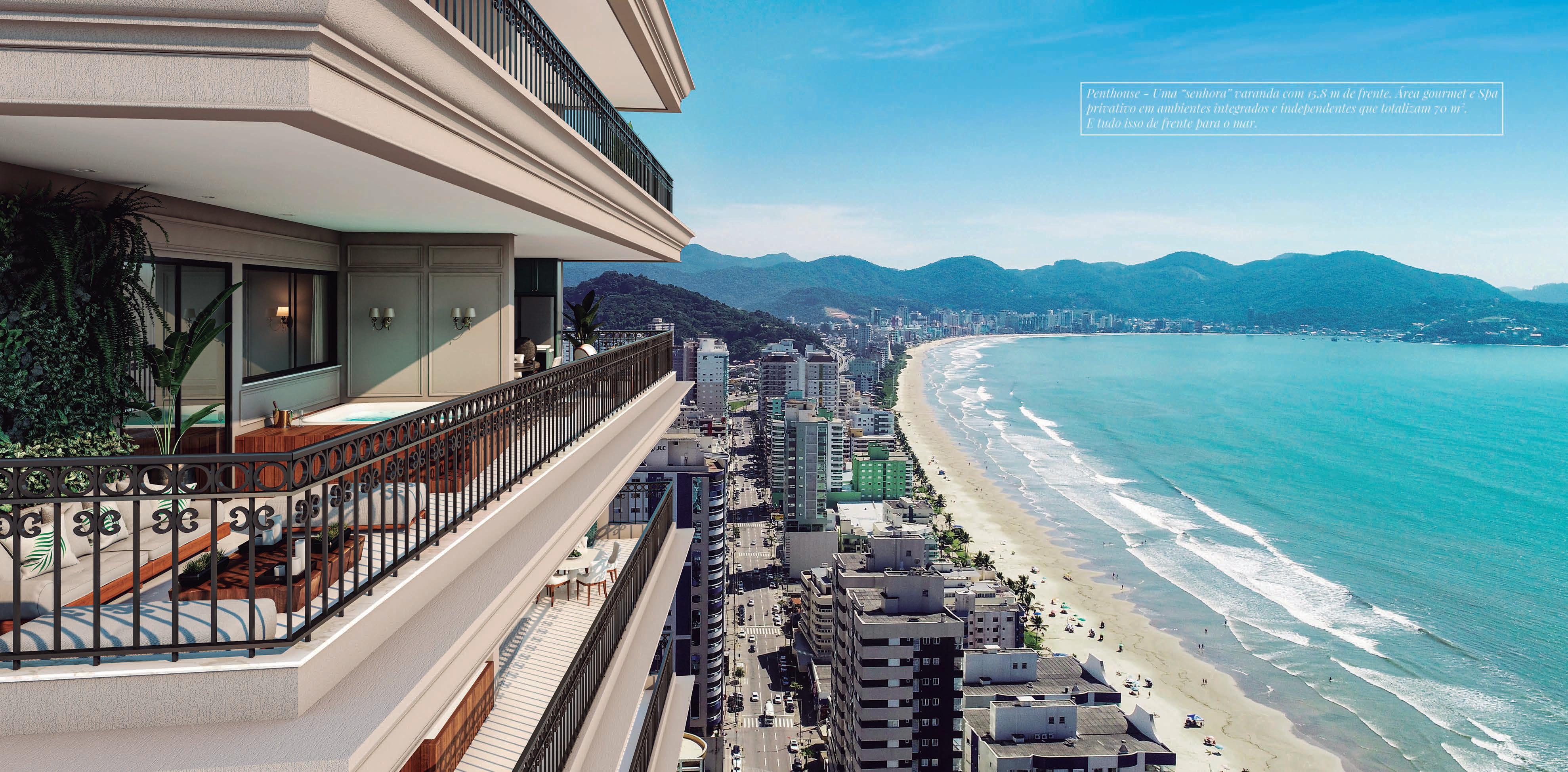 Penthouses de 04 suites+ dependência, com 337 m2 privativos, vista definitiva para o mar e 03 a 04 vagas de garagem.