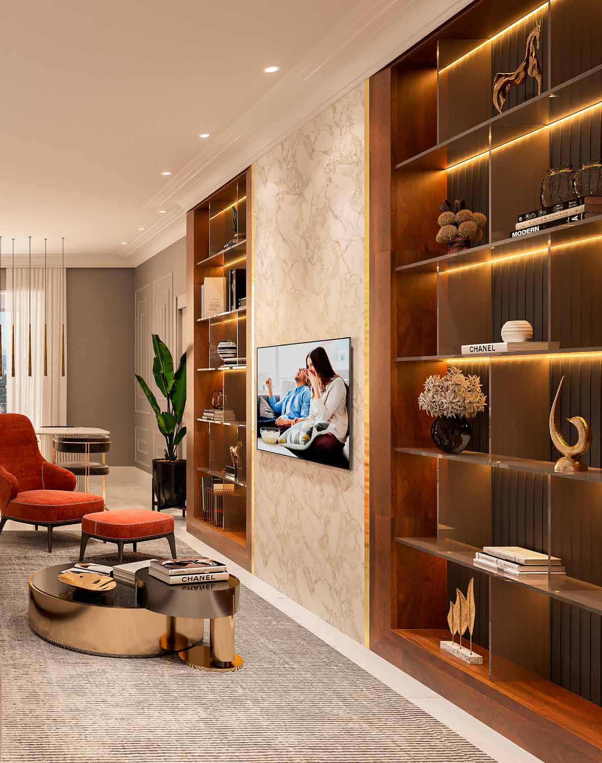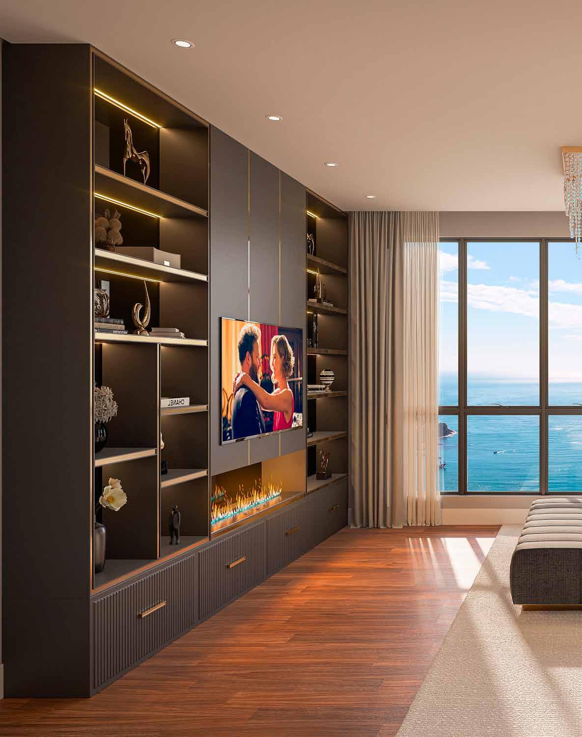 Imagine poder desfrutar de diversos espaços decorados pela equipe de arquitetura Dallo no 54° andar.