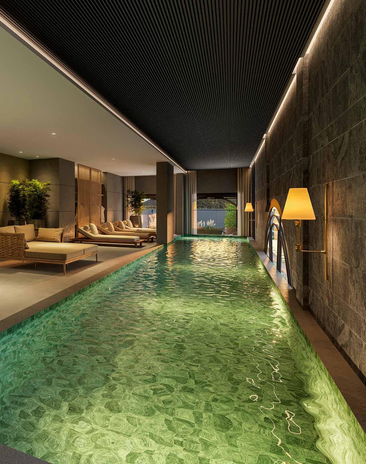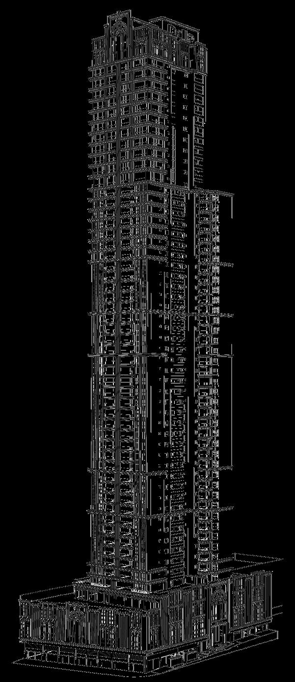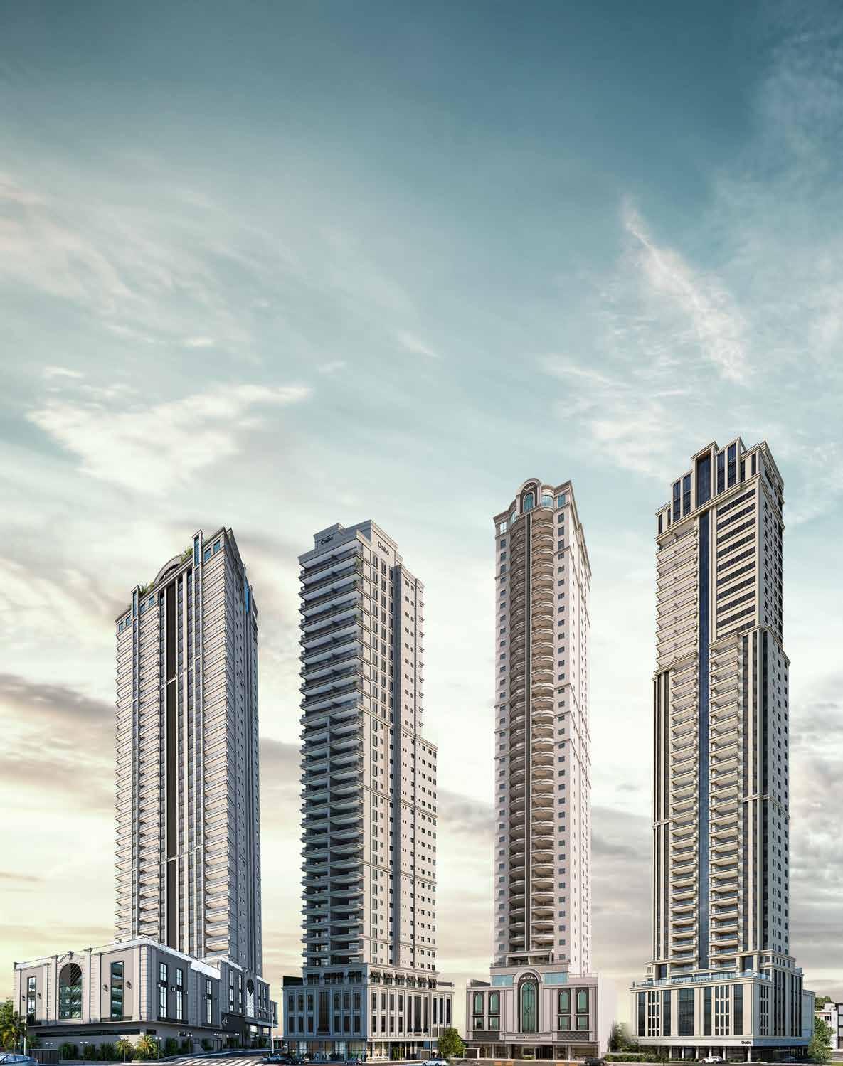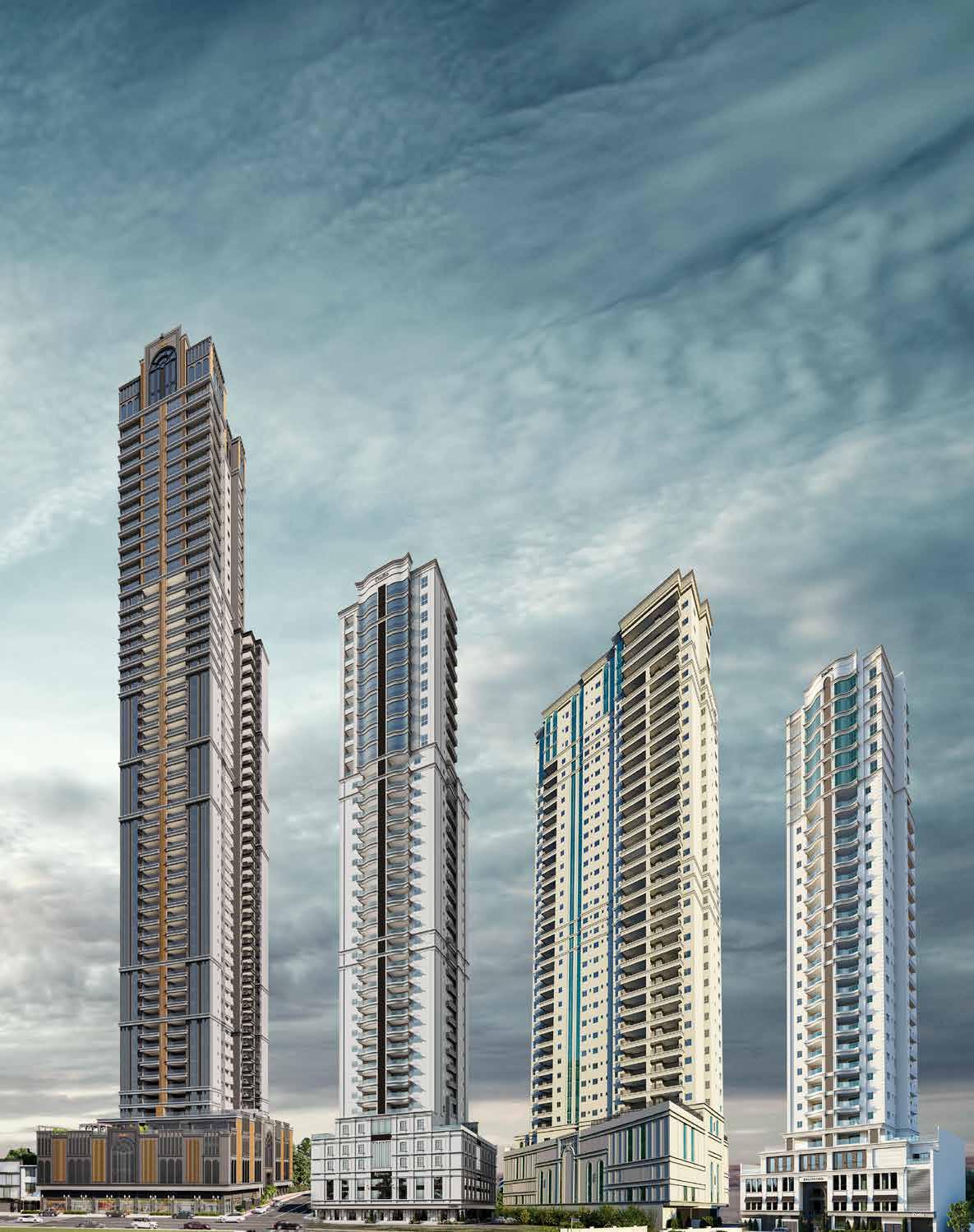 Subindo 54 andares ao céu, abriga 163 residências de luxo, todas com 4 suítes e ao menos 3 vagas de garagem, além de 38 unidades comerciais.