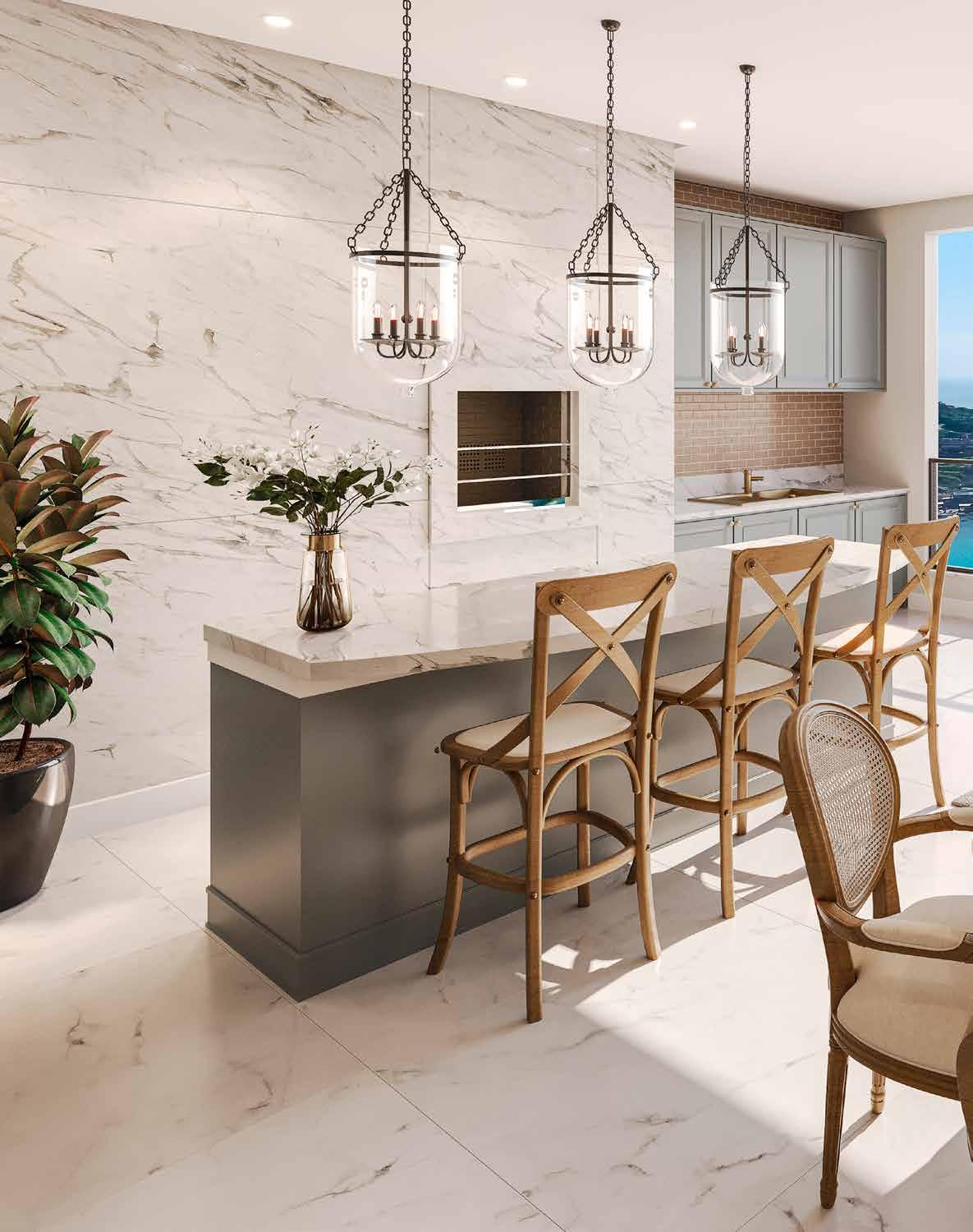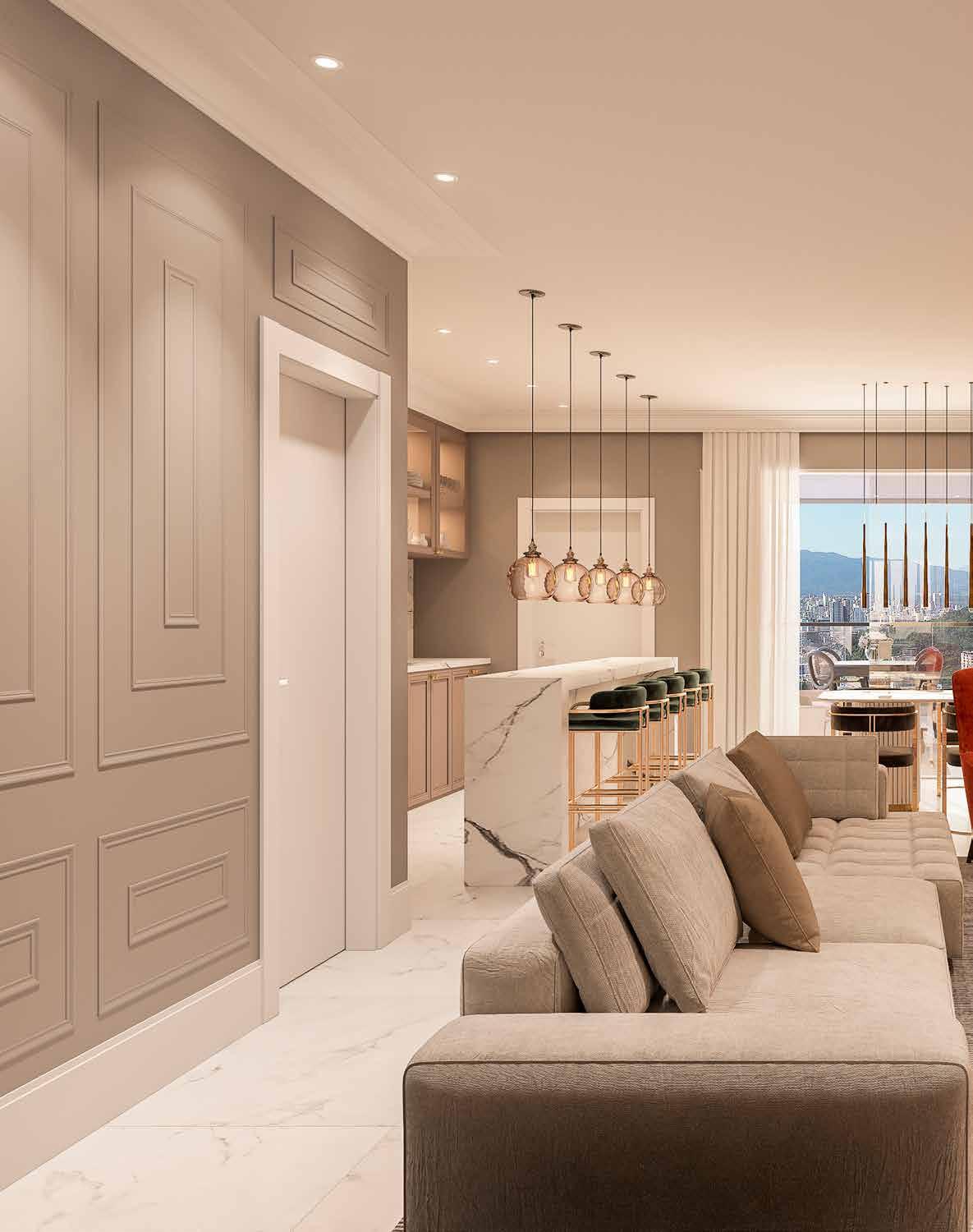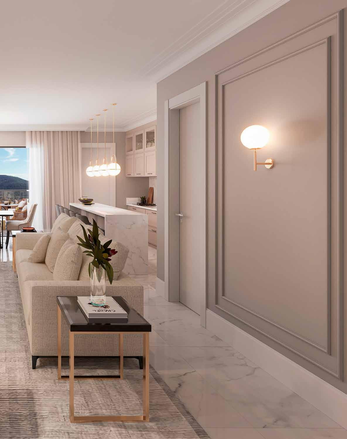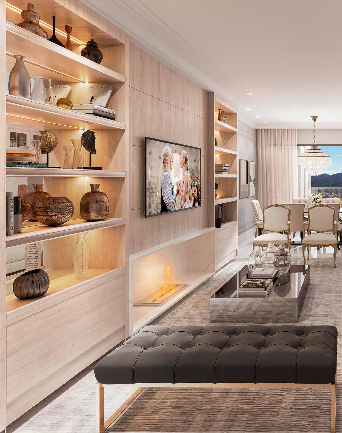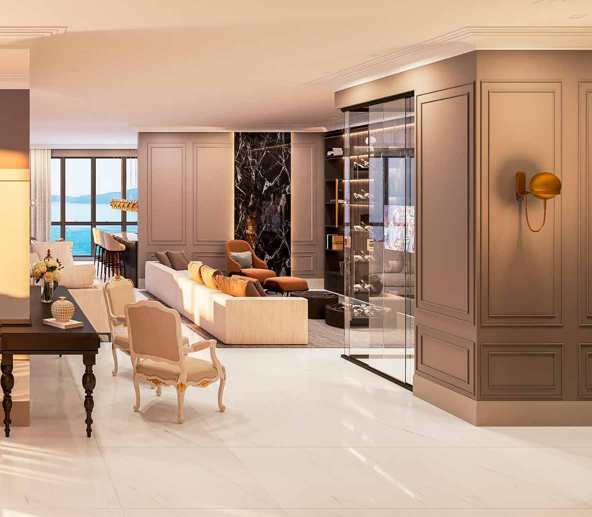 Quando o design encontra vistas incomparáveis. 185 m² em ambientes integrados, entre living, sacada e spa.