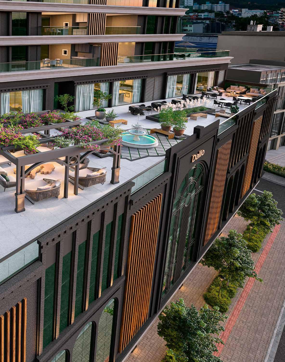 Com 54 andares na principal avenida de Itapema, o Dallo La Rocca abriga 163 residências incomparáveis em qualidade, bem como um dos espaços comerciais mais ornamentados da cidade. Outrora a estrutura mais alta de Itapema, La Rocca oferece aos residentes não apenas uma reputação, mas também, casas que capturam vistas espetaculares do mar e do horizonte.