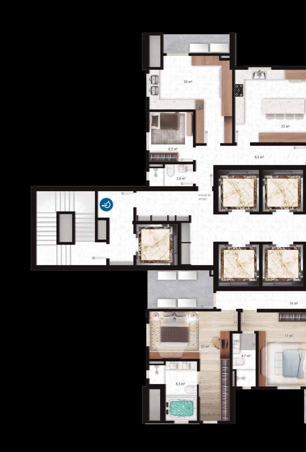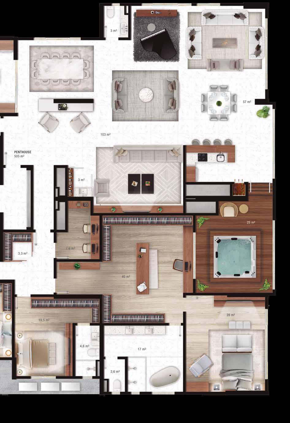 As Penthouses do La Rocca definem um novo padrão de vida de luxo. Com paredes de vidro que destacam vistas inimagináveis, as 11 exclusivas residências são as mais cobiçadas da torre.