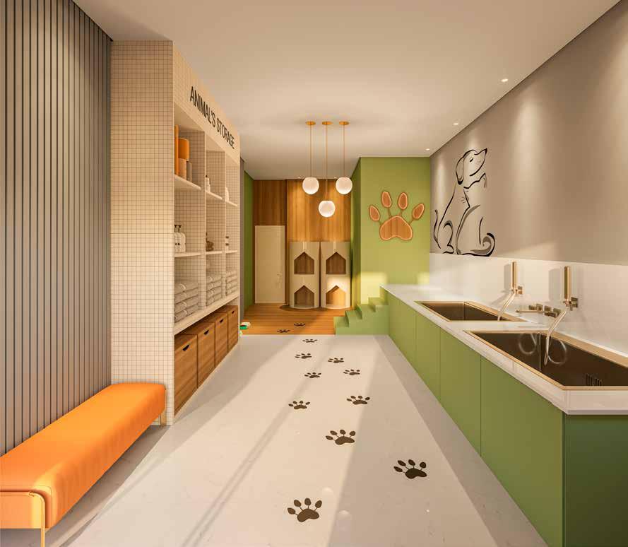 • O piso vinílico das suítes proporciona considerável ganho acústico por propagar menor barulho do caminhar de pessoas com calçados e de pets;