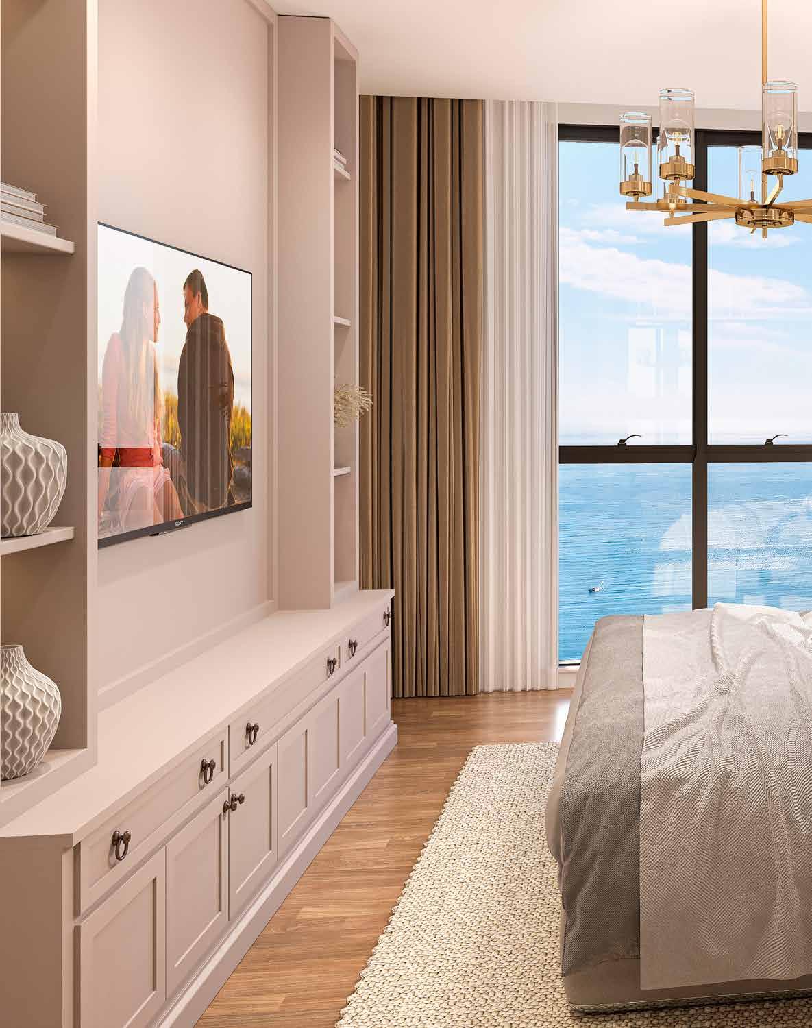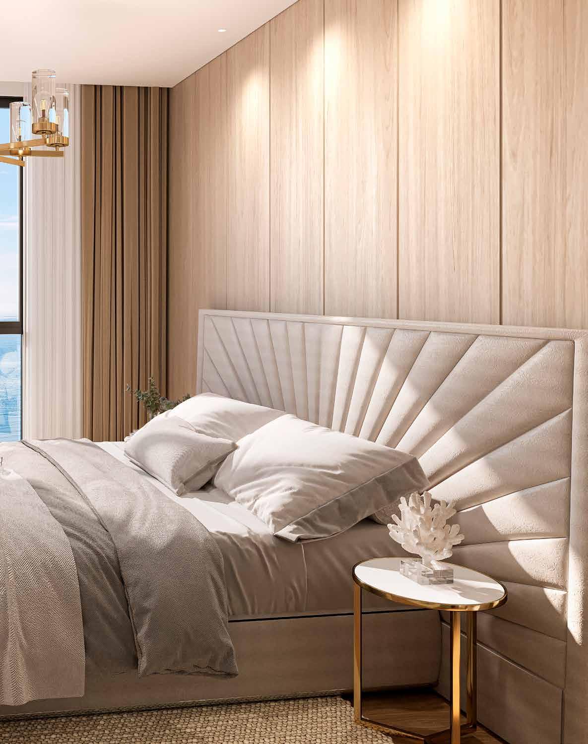• Nos dormitórios, piso vinílico com excelente qualidade de acabamento, estética e ótimo desempenho em acústica e durabilidade;
