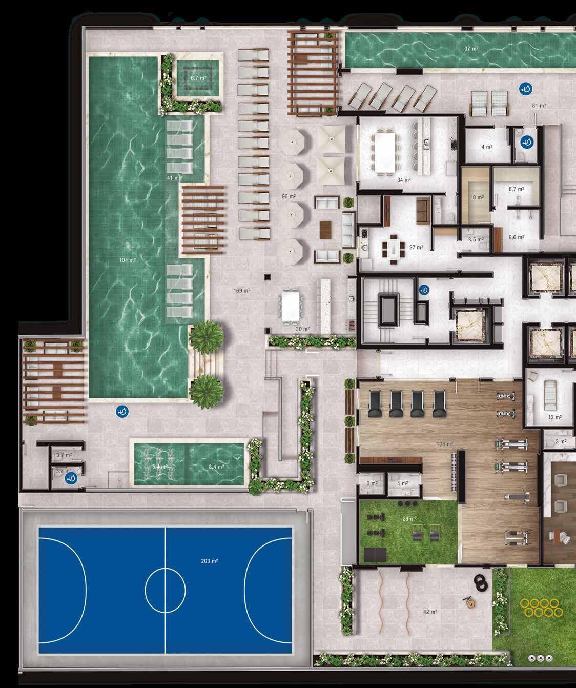 • Áreas comuns com iluminação em LED e sensores de presença;