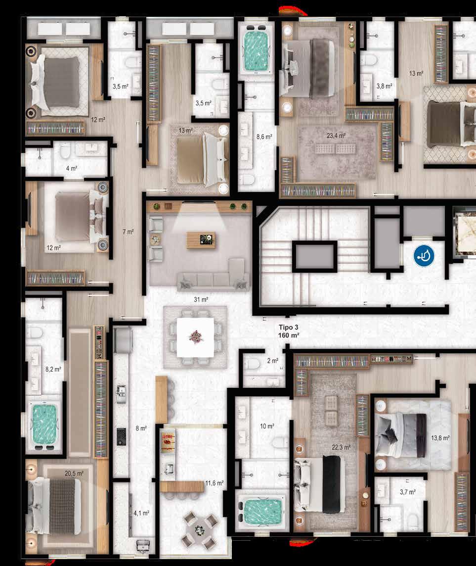 Tipos 3 - 160 m² privativos | 254 m² de área total