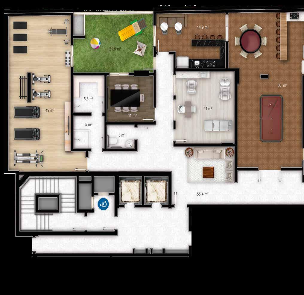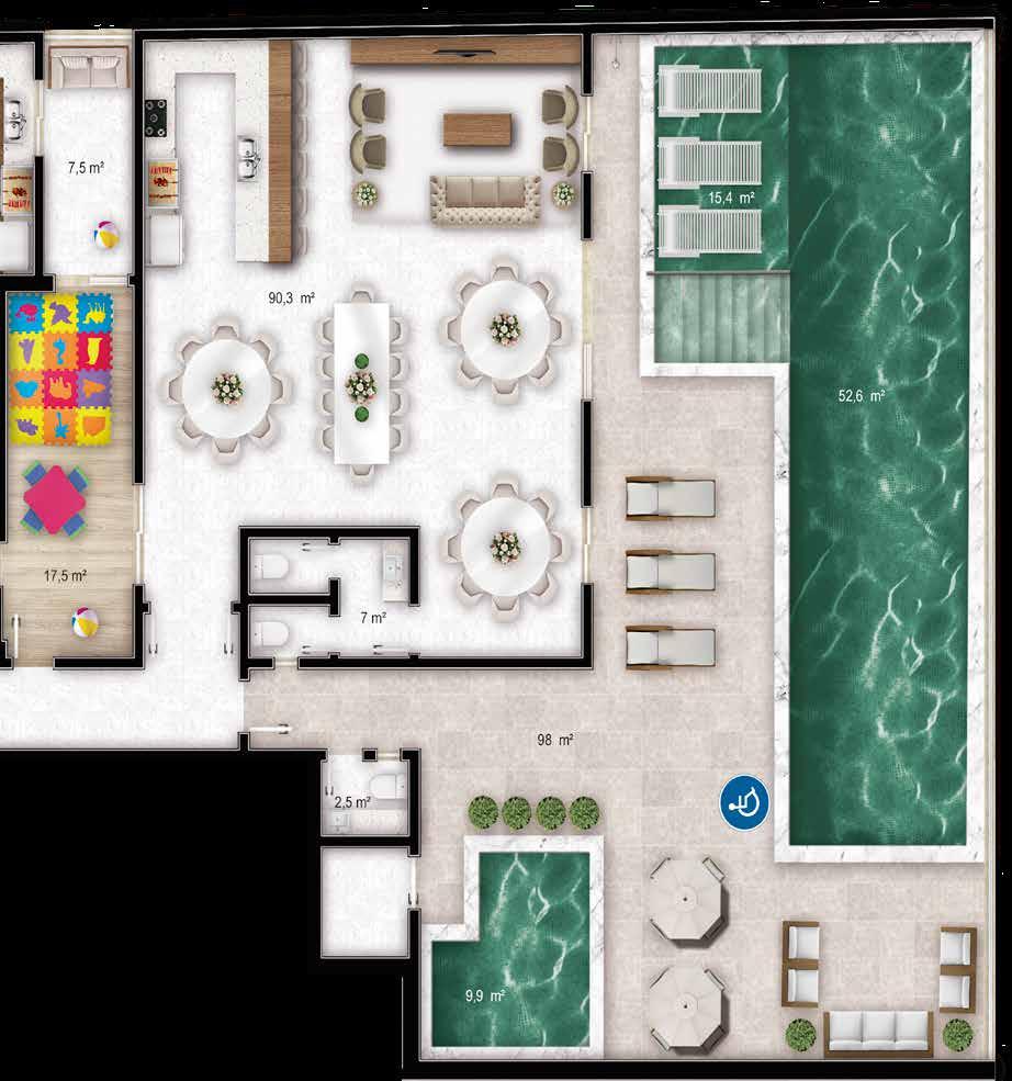 Espaço teen 6) Sala de jogos com gourmet 7) Personal care